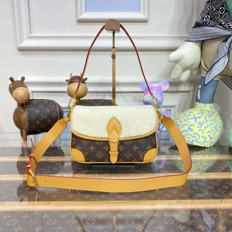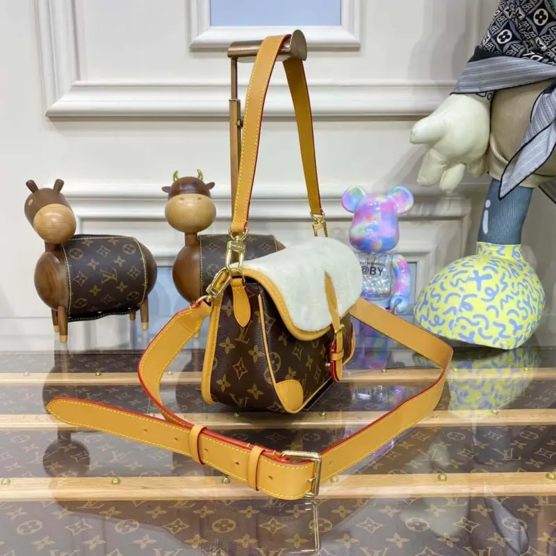 Monogram Print with Shearling Accent Diane Shoulder Bag M46317