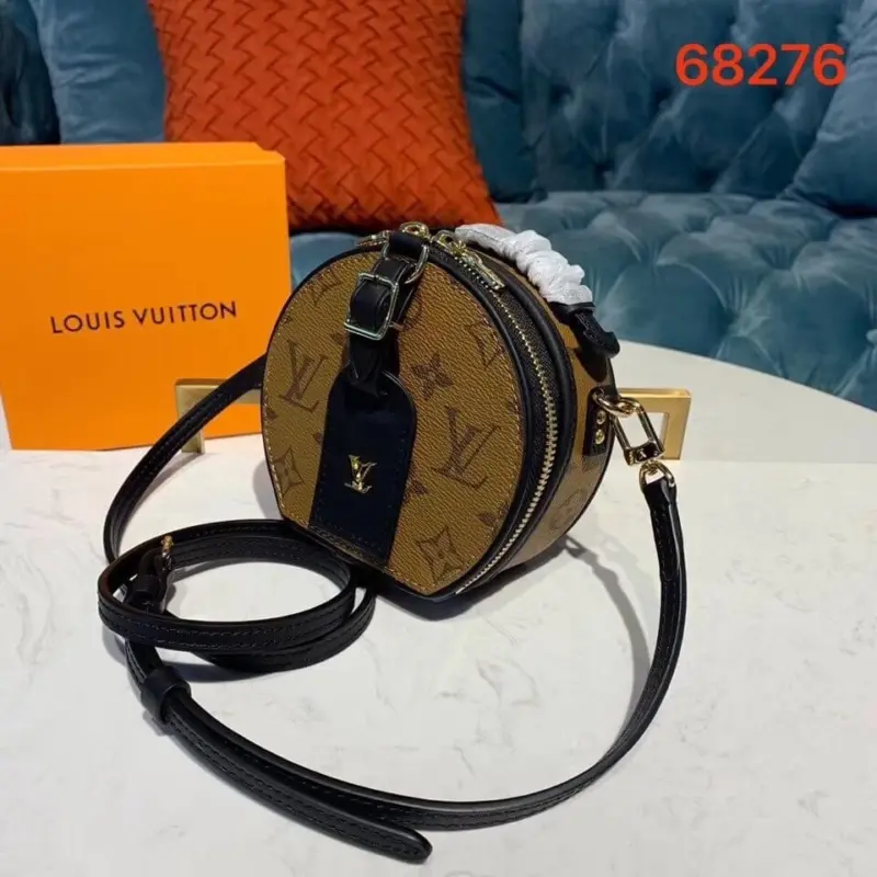 Monogram Reverse Canvas Mini Round Hat Box Crossbody Bag M68276