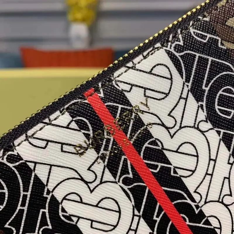 Monogram Stripe Print E-canvas Zip Top Travel Pouch 80188941