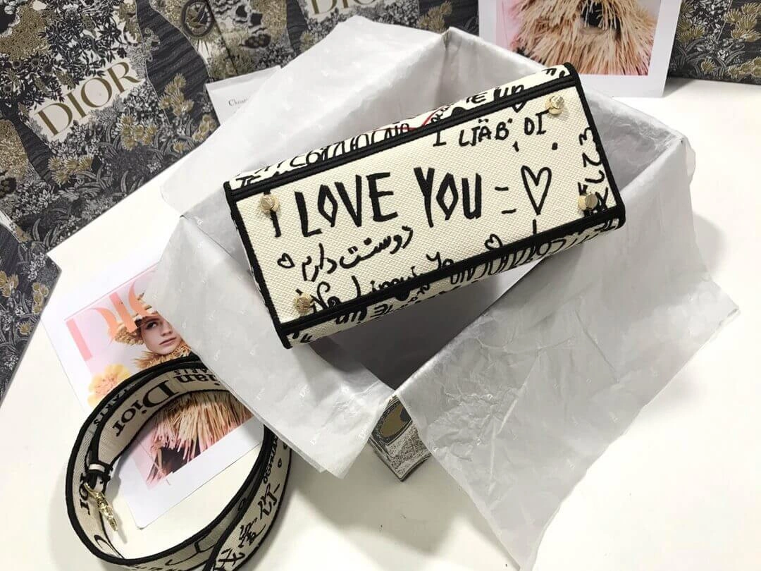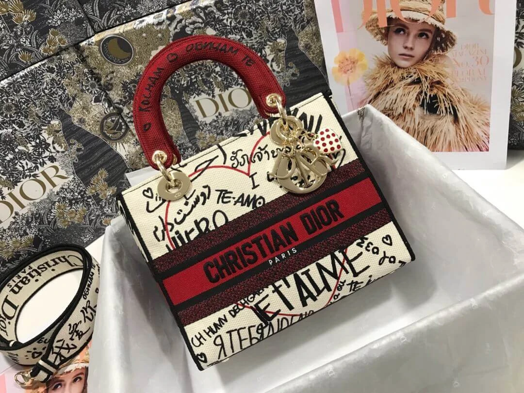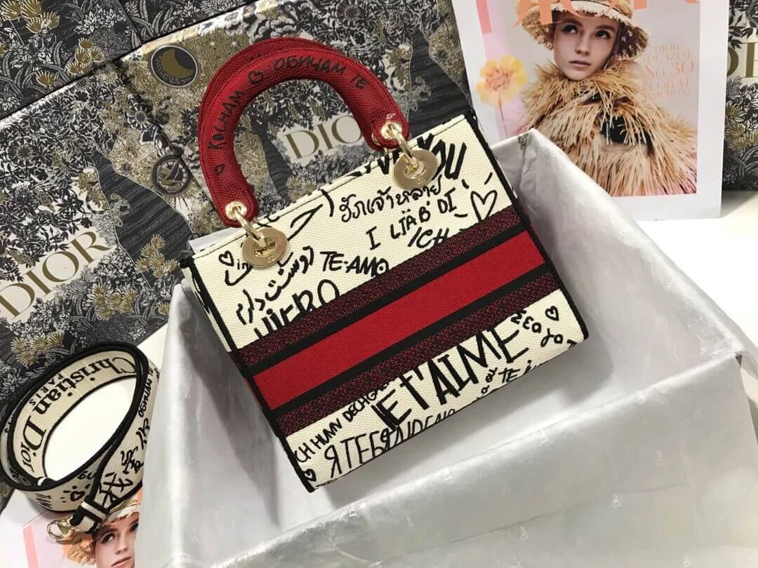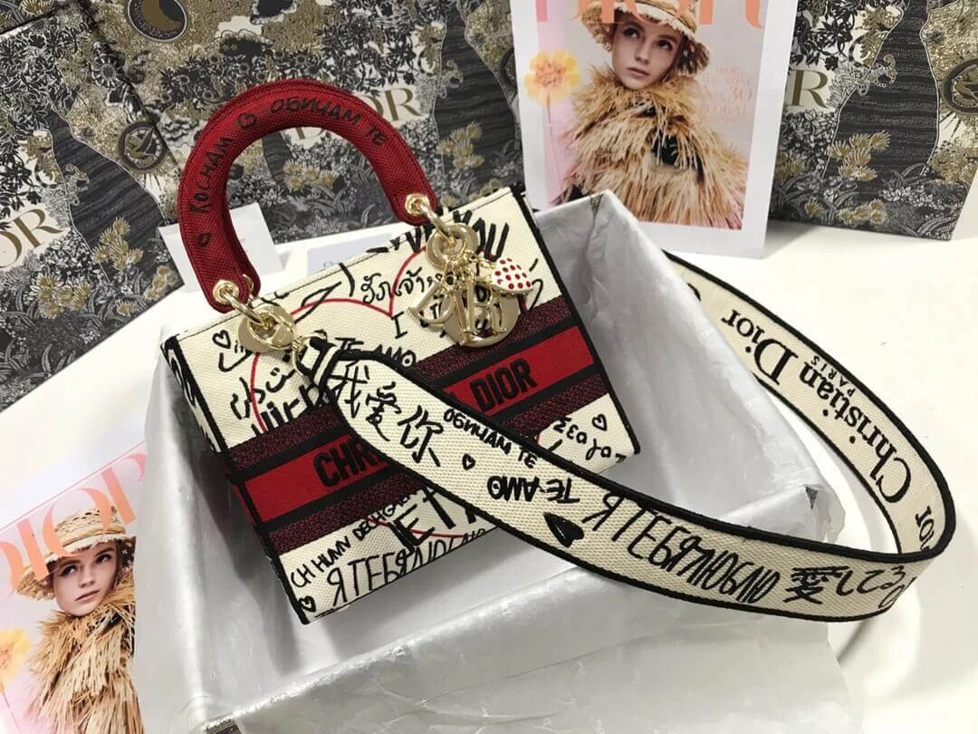 Multicolor Graffiti Embroidery Medium Lady D-Lite Top Handle Bag M0565