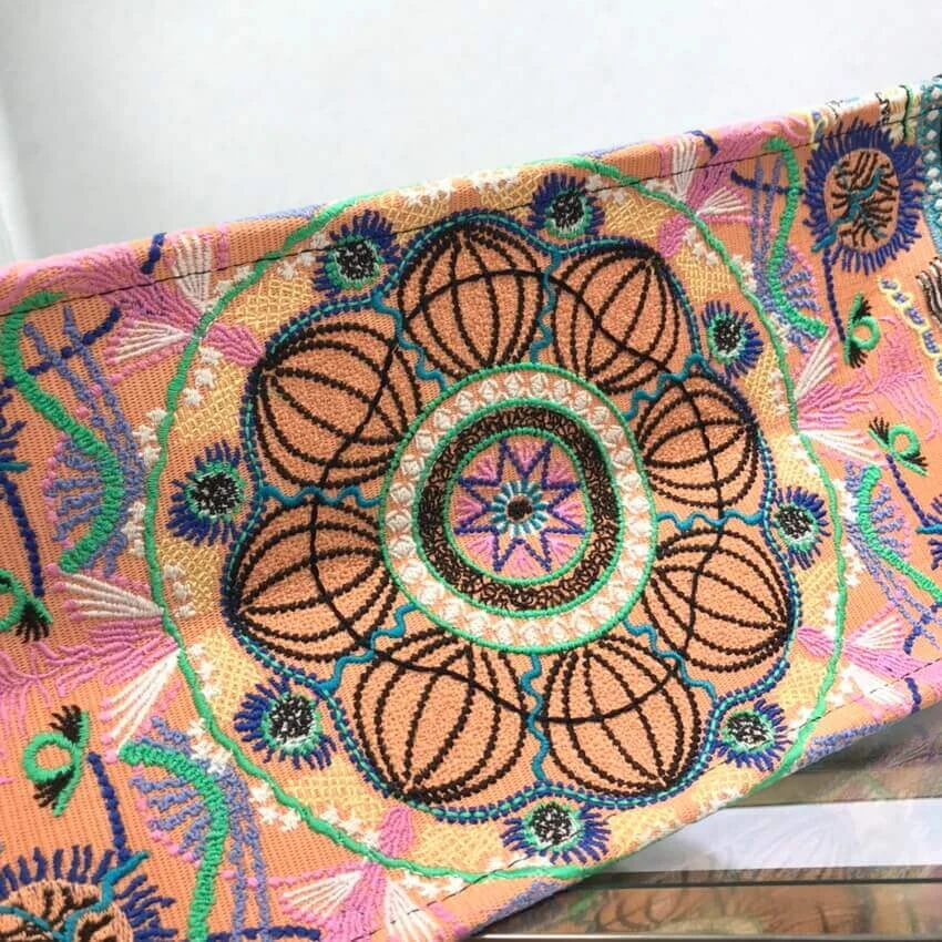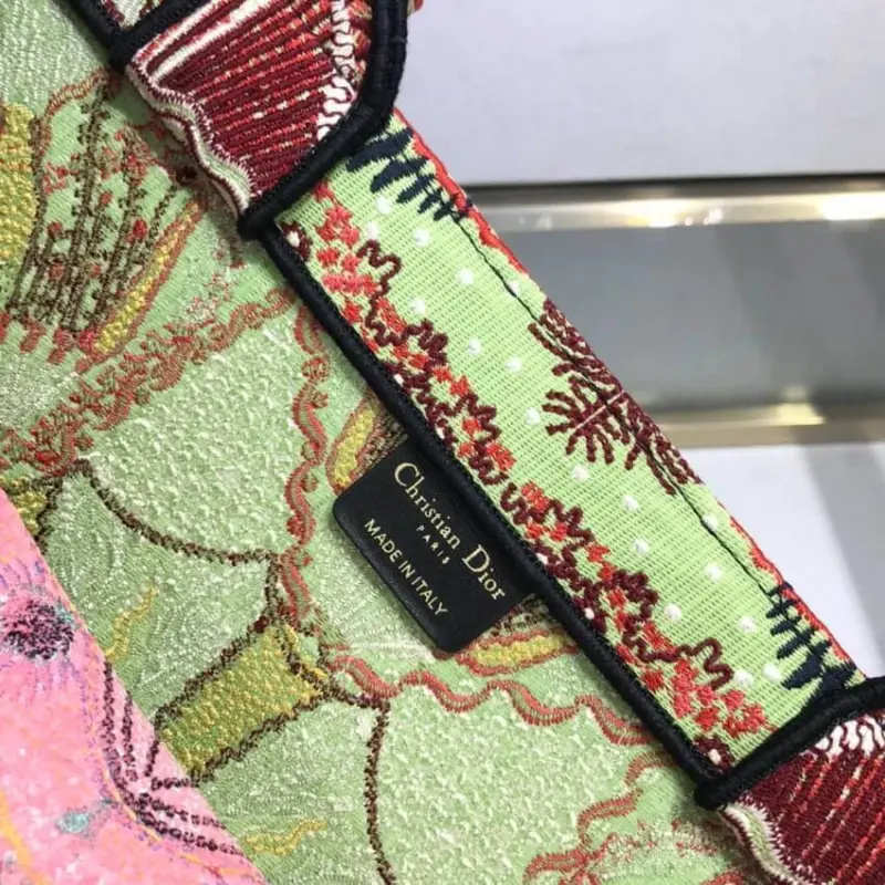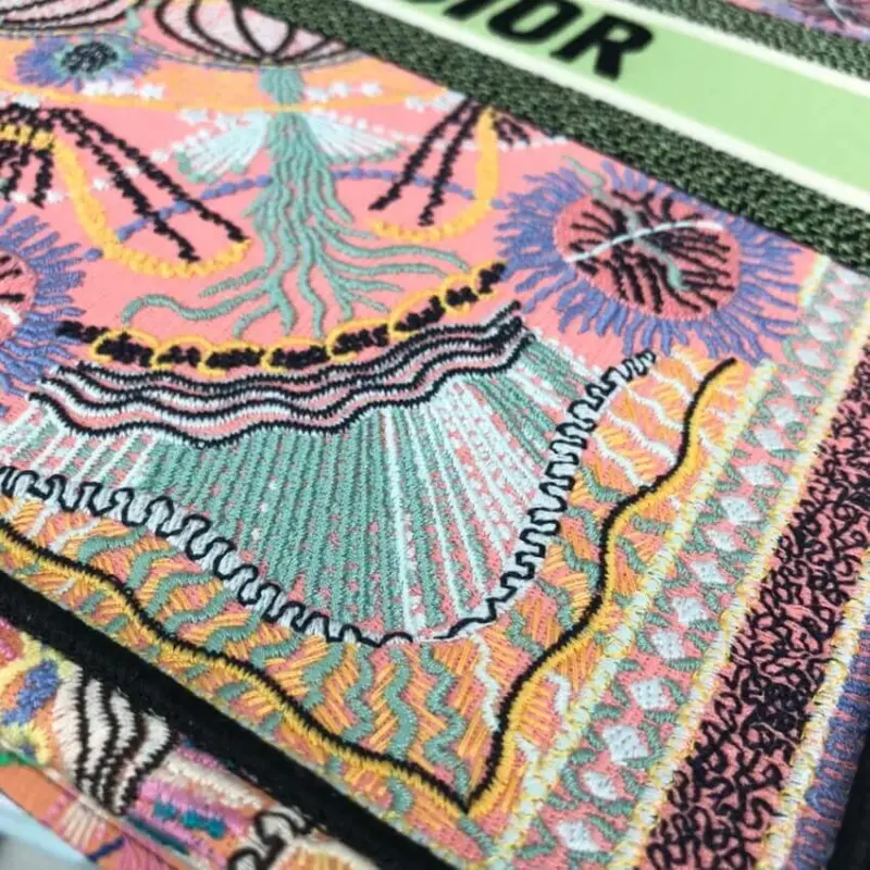 Inspired by the brilliant glow of southern Italian light festivals, this stunning book-style tote is a work of wearable art. It features a graphic multicolor embroidery, beautifully accented with metallic thread for a subtle shimmer. The bag’s structured shape and generous interior make it a perfect companion for everything from daily commutes to weekend adventures.