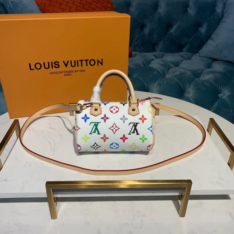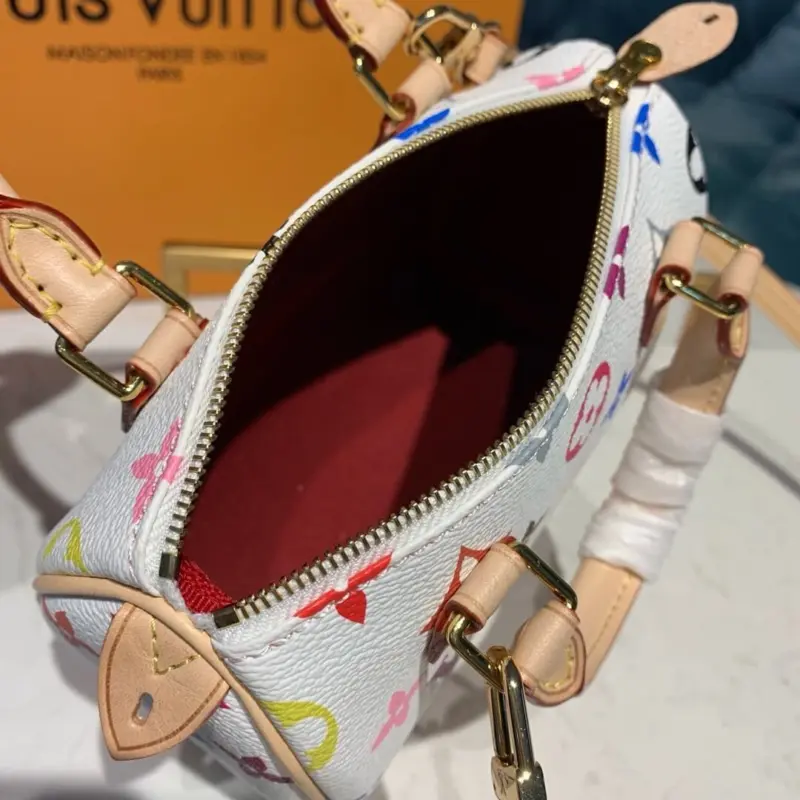 Discover the timeless appeal of a classic Boston bag, reimagined in a conveniently compact size. This charming top-handle bag features an eye-catching and vibrant multicolor monogram print, offering a playful yet sophisticated aesthetic that elevates any outfit. Its petite silhouette makes it an ideal companion for both daily errands and special occasions.