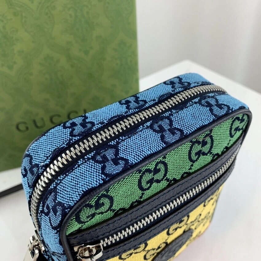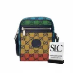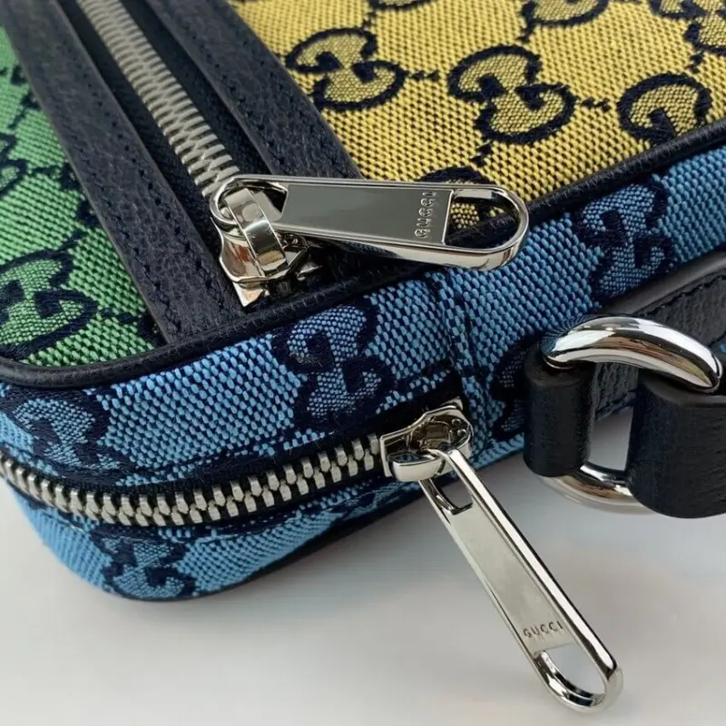 Embrace a bold and contemporary aesthetic with this eye-catching top-handle tote. Crafted from a durable canvas featuring a vibrant, multicolor geometric monogram print, this bag offers a fresh and modern interpretation of a classic pattern. The design is elegantly framed with sophisticated blue leather trim, creating a stunning visual contrast that is sure to turn heads. Its versatile structure makes it a perfect accessory for adding a splash of color to any ensemble.
