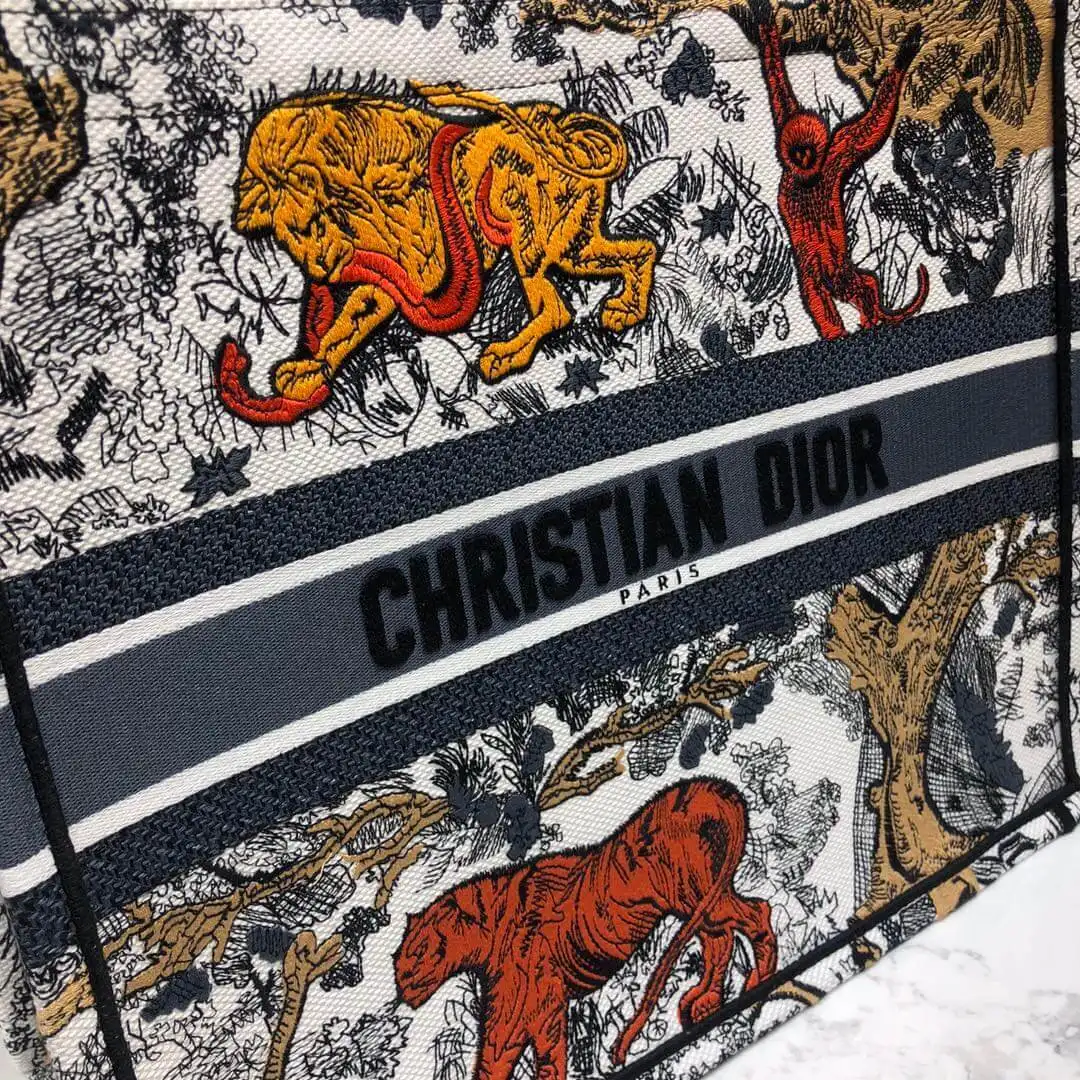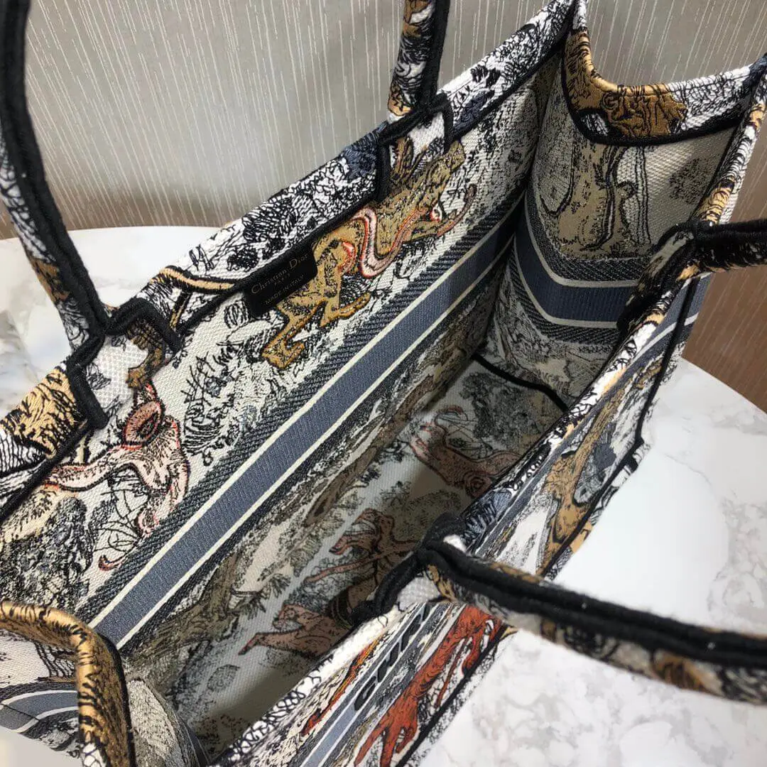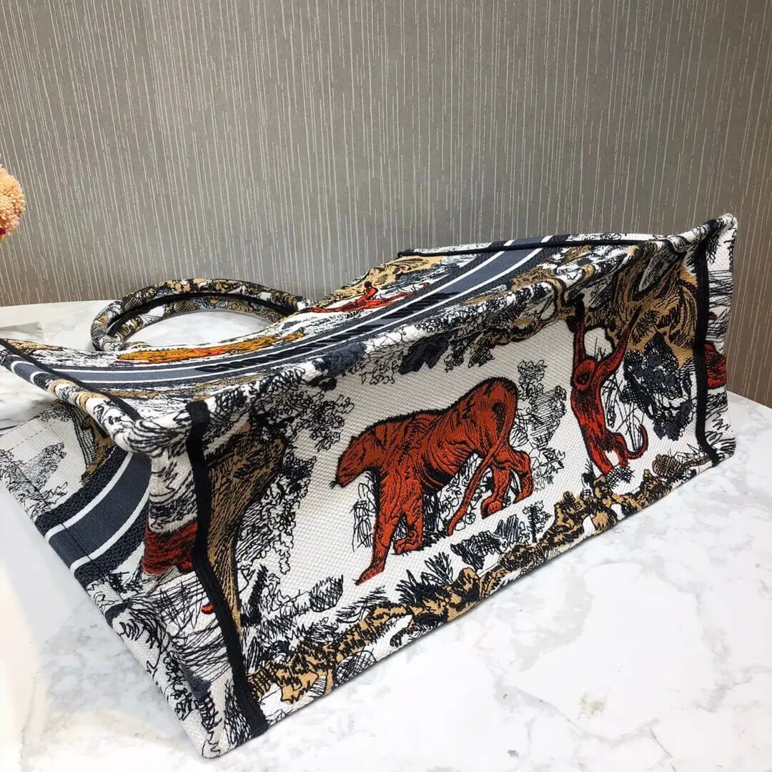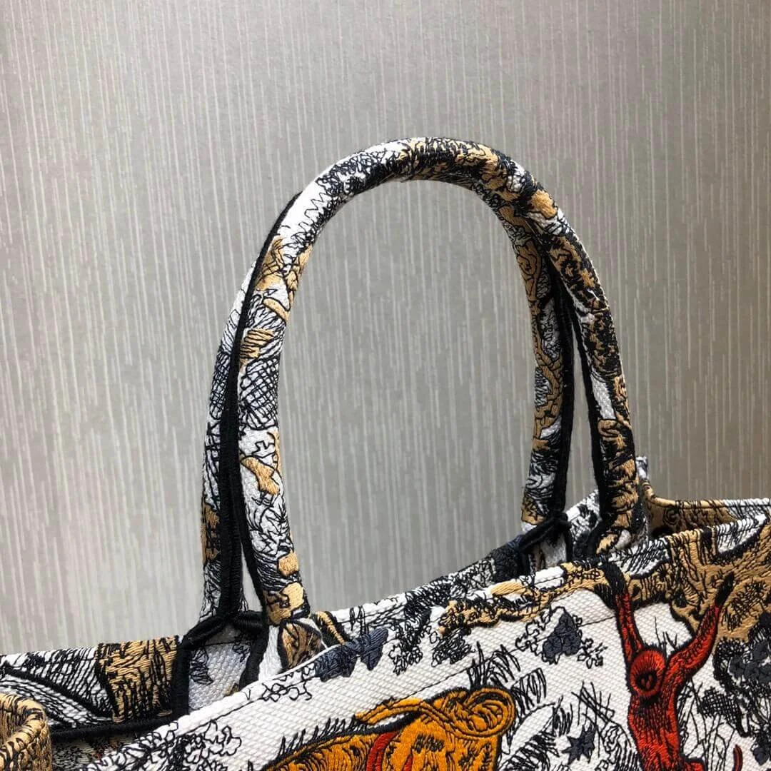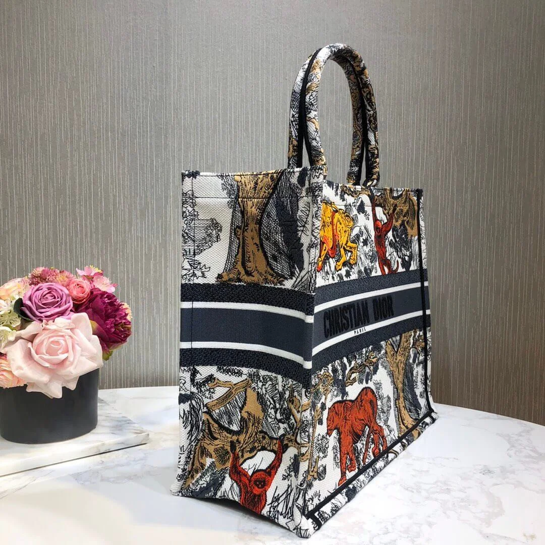 Multicolor Toile De Jouy Embroidered Large Book Tote Bag M1286