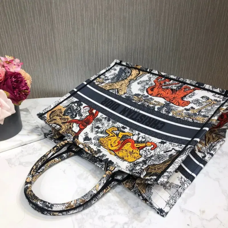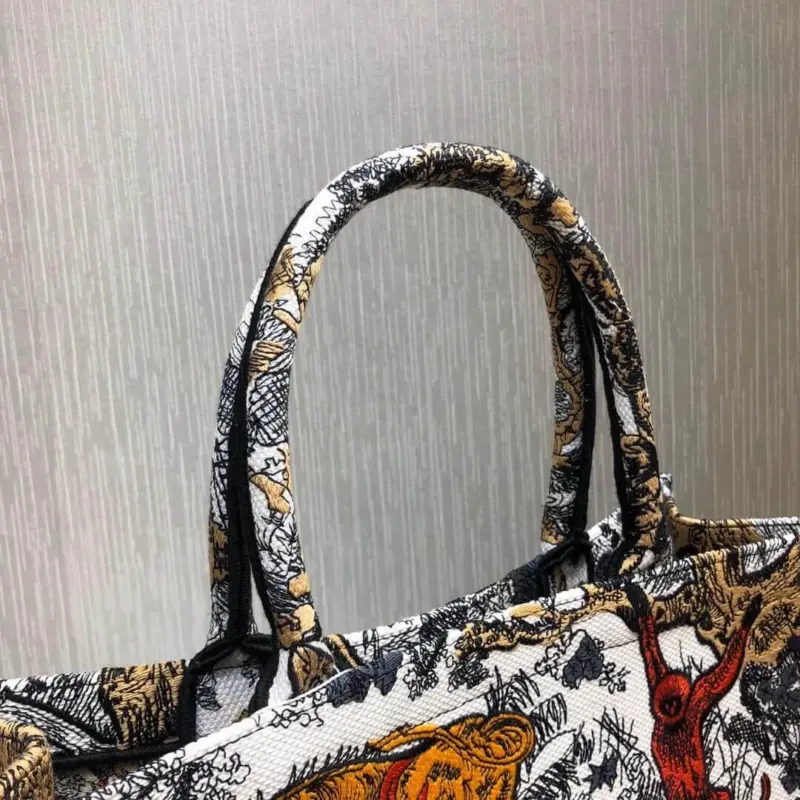 Experience exquisite craftsmanship with this beautifully structured tote bag, fully adorned with an intricate multicolor Toile de Jouy embroidery. This bag’s generous size and timeless rectangular shape make it a versatile and essential accessory, perfect for carrying everything from daily essentials to travel necessities. The detailed pastoral scenes rendered in the classic French-inspired motif add a layer of sophistication and artistry.