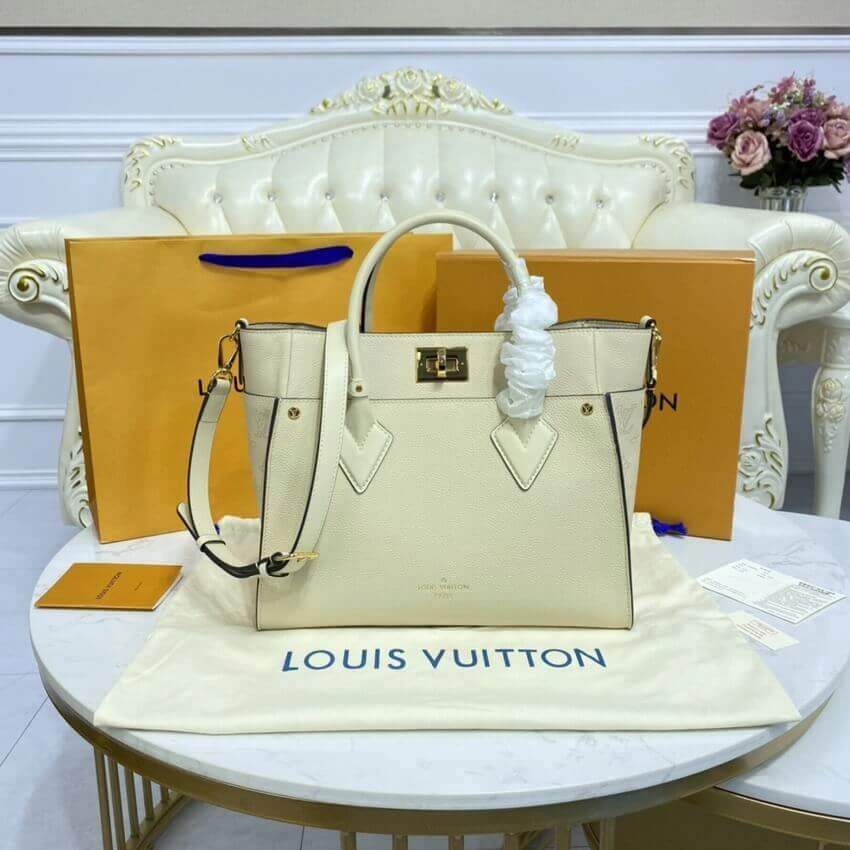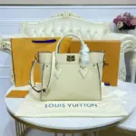 On My Side Top Handle Shoulder Bag in Beige Leather M55802