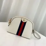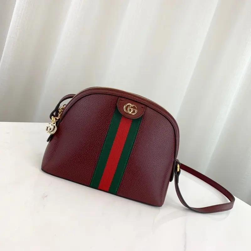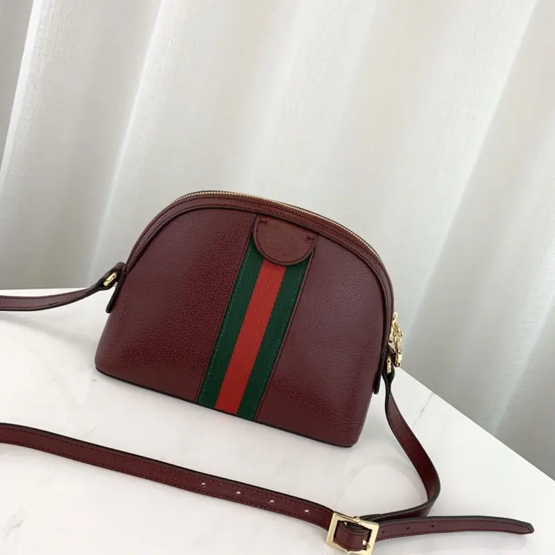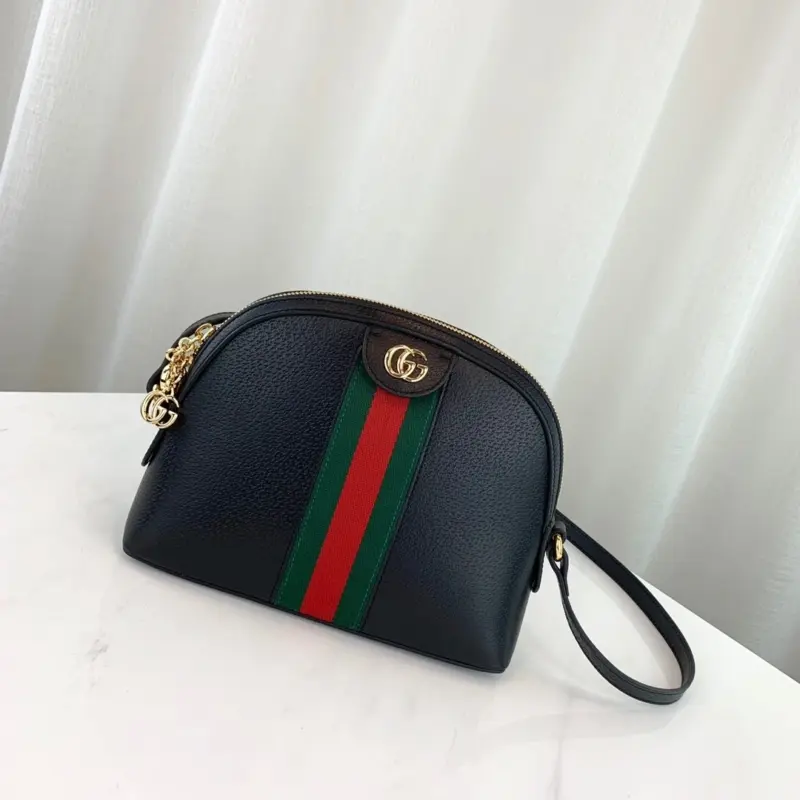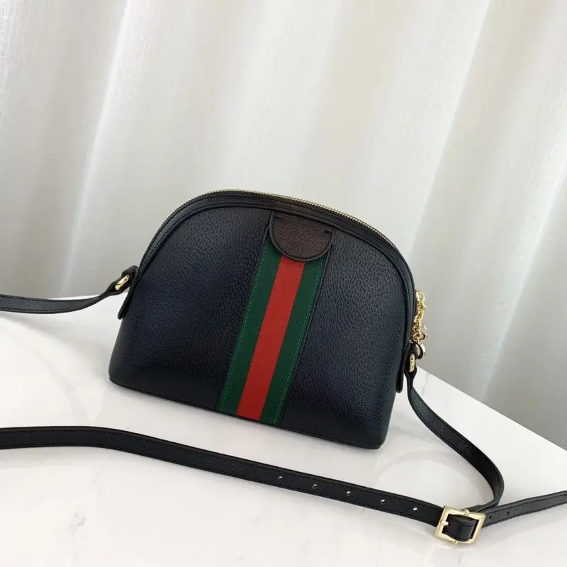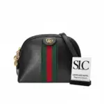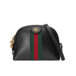 Discover a timeless accessory with this beautifully structured, dome-shaped shoulder bag. Expertly crafted from smooth, premium black leather, this piece showcases a classic design that blends vintage inspiration with modern elegance. The bag’s sophisticated silhouette is enhanced by a signature green and red striped webbing detail, adding a touch of vibrant, heritage-inspired style.