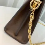 Designed for both style and function, this bag features a secure magnetic flap closure that opens to reveal a well-organized interior with two main compartments. The gleaming, gold-toned hardware, including a polished interlocking emblem motif, adds a final touch of luxury. Carry it comfortably by the polished chain strap for a refined finish to any outfit.