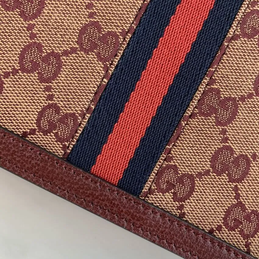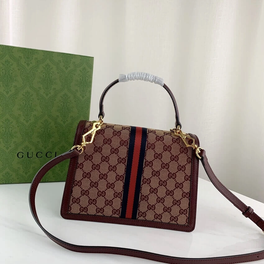 Ophidia Small Burgundy Top Handle Bag with Web Detail 651055