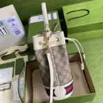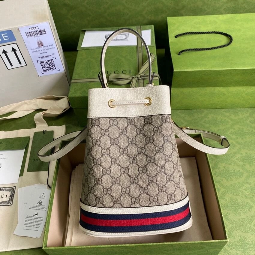 Ophidia Small Monogram Print Bucket Bag in White 550621
