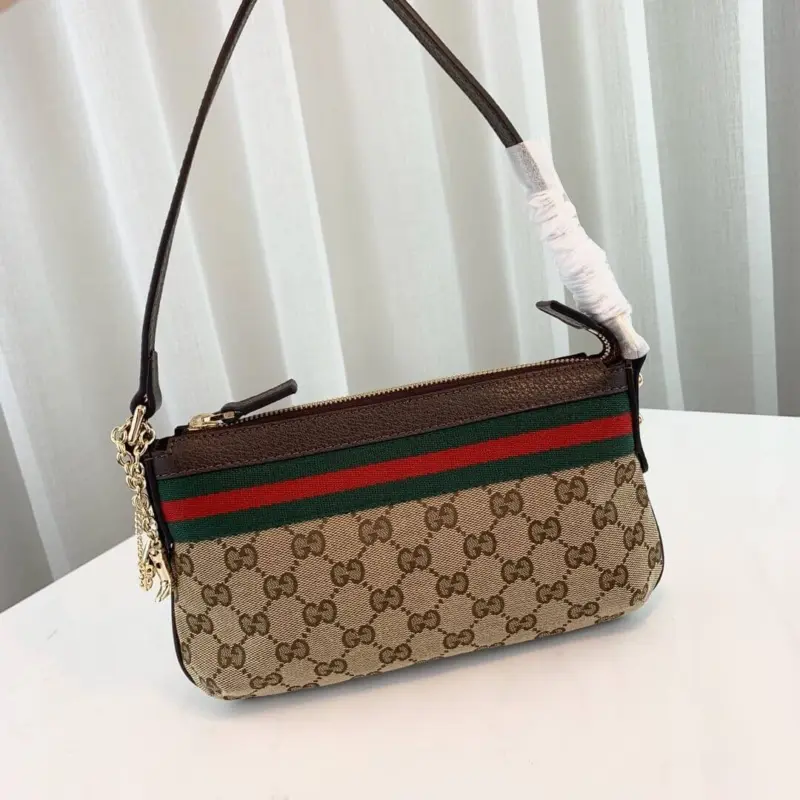 Designed with practicality in mind, this small tote is perfectly proportioned to hold your daily essentials without feeling cumbersome. The comfortable dual top handles allow for easy carrying, while the thoughtfully organized interior keeps your belongings secure. Accented with a signature striped webbing detail and rich leather trim, this bag is an enduring choice for seasons to come.