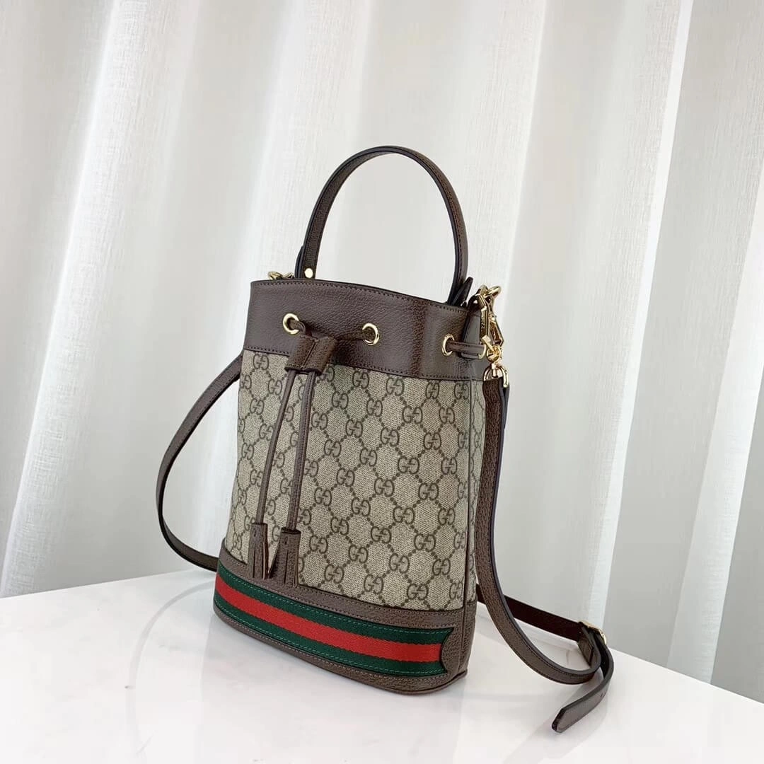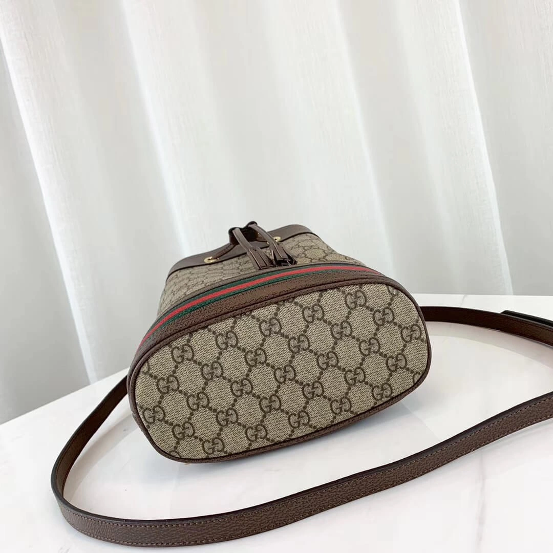 Ophidia Small Monogram Web Stripe Drawstring Bucket Bag 550621