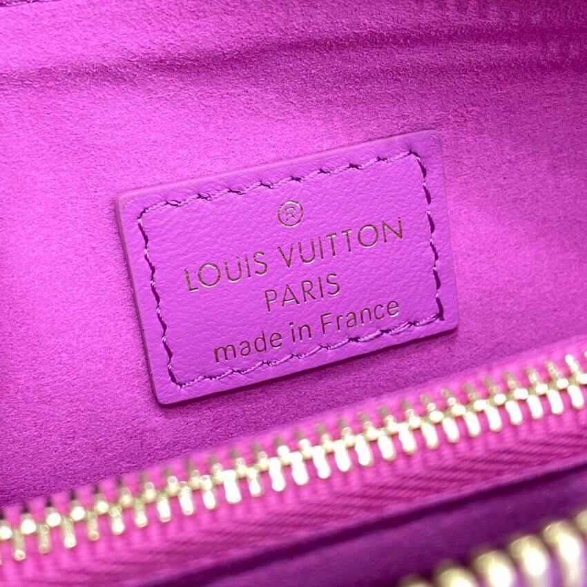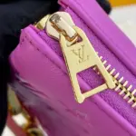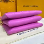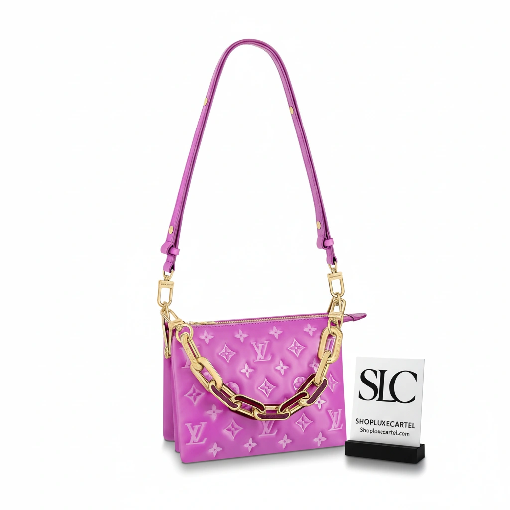 Experience luxurious comfort with this compact shoulder bag, expertly crafted from soft, puffy lambskin with a subtle embossed pattern. Its body-friendly design and plush texture make it a pleasure to carry from day into evening. The vibrant orchid purple color provides a stunning and sophisticated statement piece for any wardrobe.