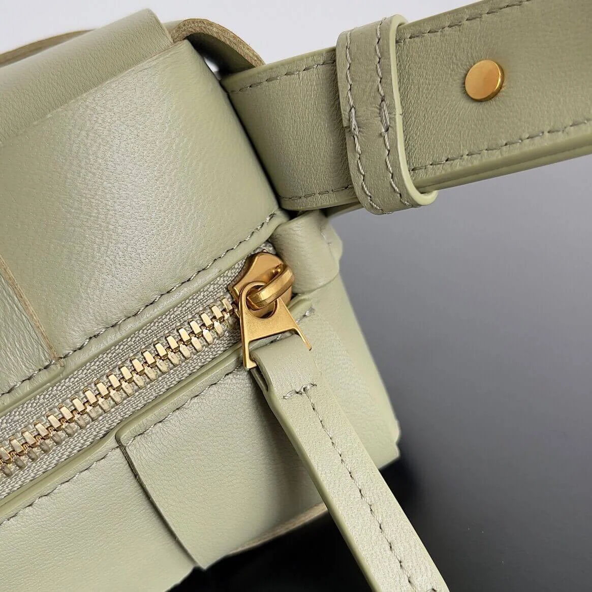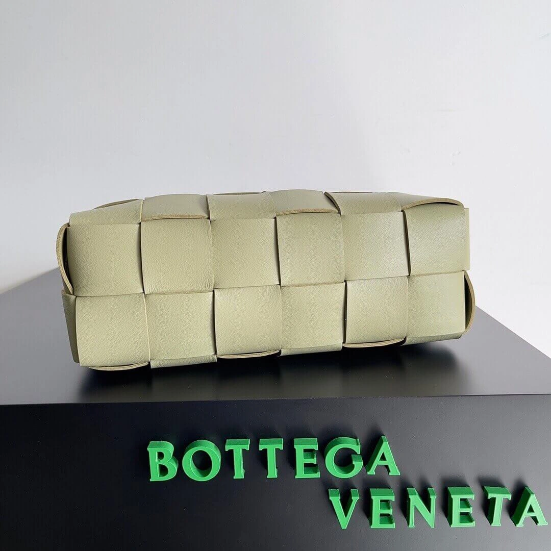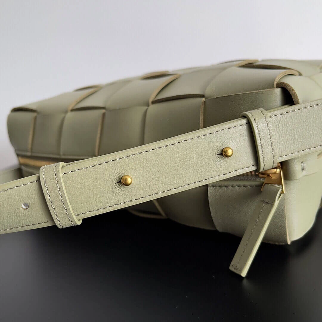 Padded Woven Leather Brick Cassette Crossbody Bag Travertine