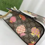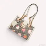 Discover a charming and structured shoulder bag that blends classic style with a playful, contemporary motif. This piece is crafted from a durable coated canvas featuring a distinctive monogram pattern, overlaid with a delightful heart and apple print. The bag’s clean lines are accentuated by crisp white leather trim and gleaming gold-toned hardware, creating a look of sophisticated whimsy.