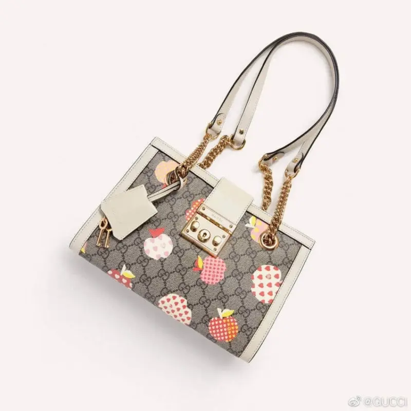 Padlock Shoulder Bag with Monogram Heart Apple Print 498156