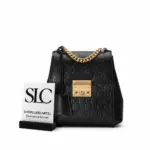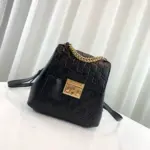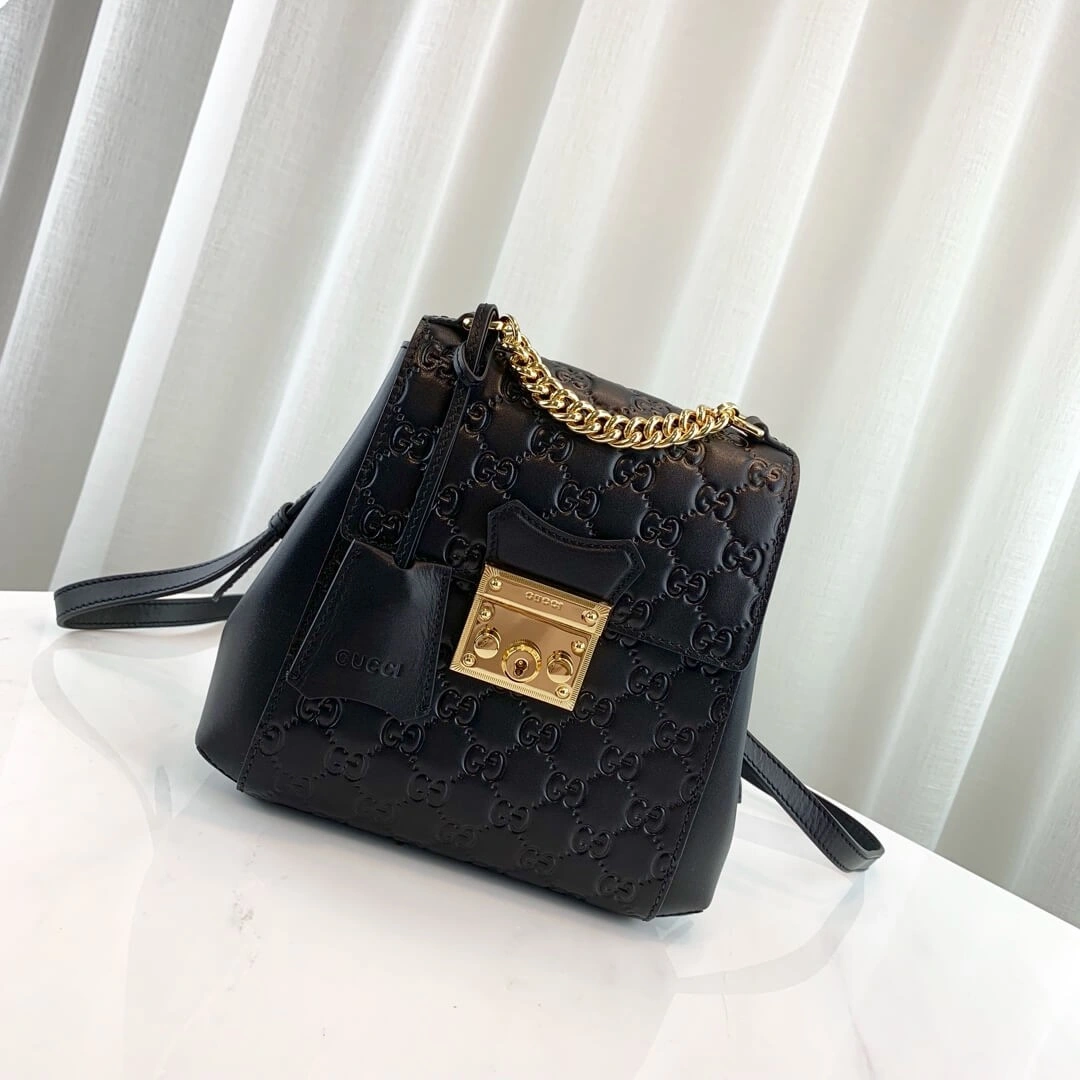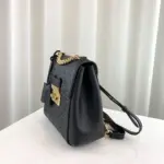 Accented with lustrous gold-toned hardware and contrasting smooth leather trim, this backpack offers versatile carrying options. Use the elegant chain top handle for a handheld look, or attach the detachable shoulder straps to wear it comfortably on your back. The compact yet organized interior makes it perfect for daily essentials.