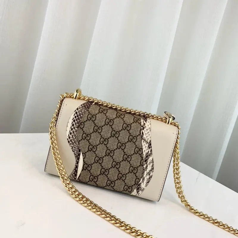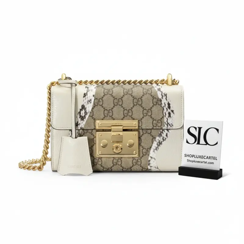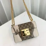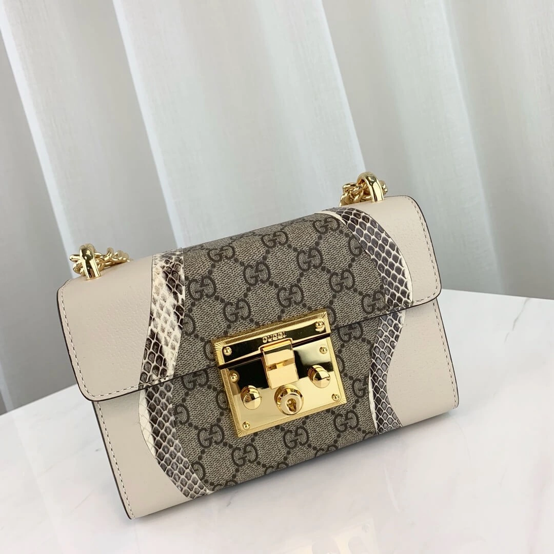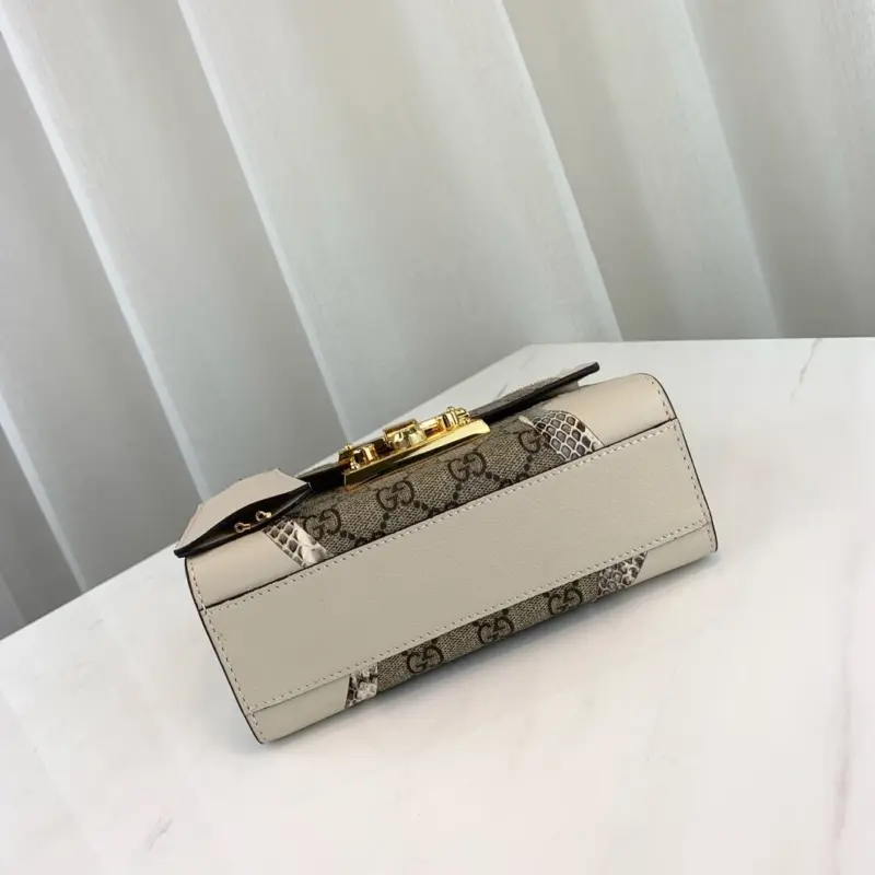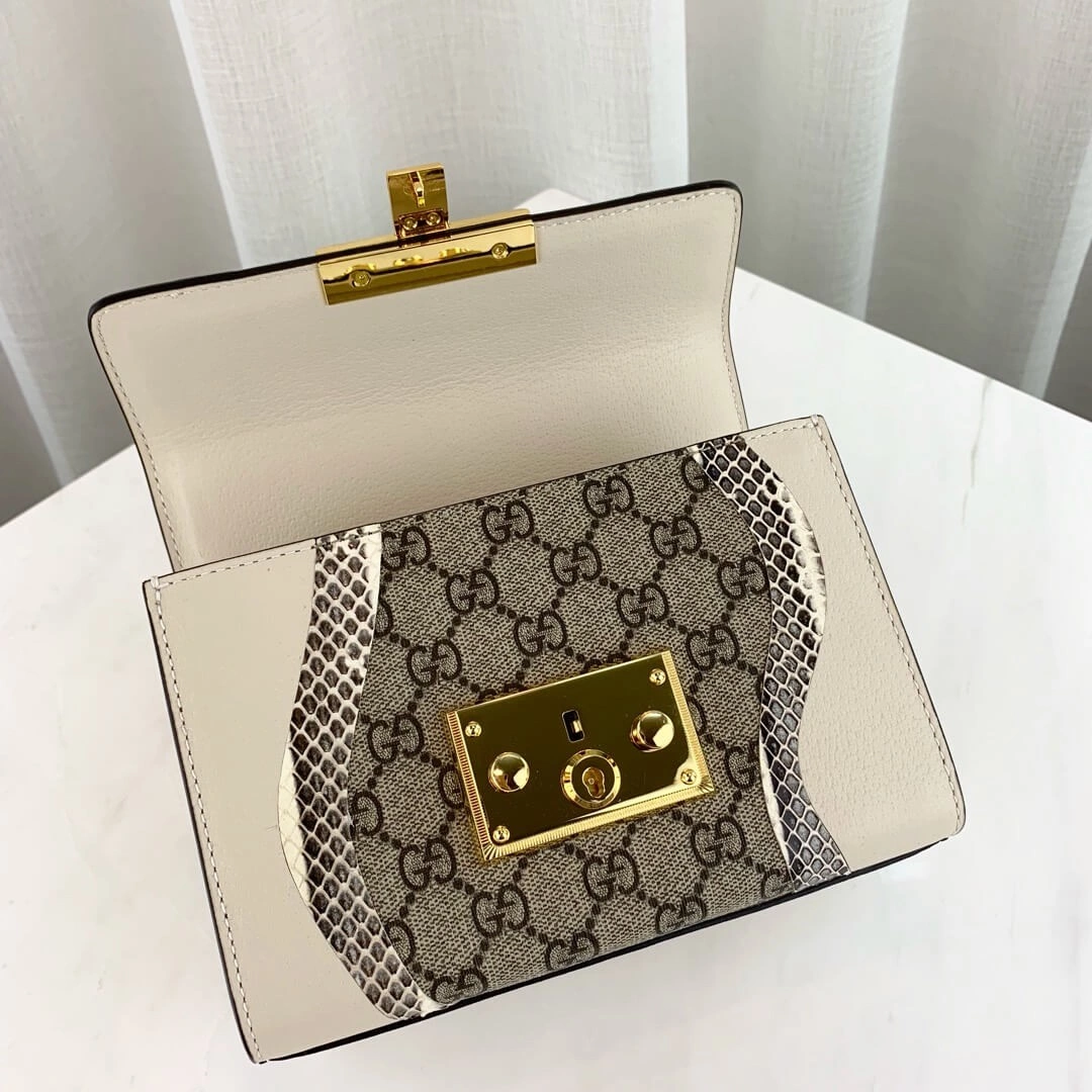 Padlock Small Chain Shoulder Bag in White Snakeskin 432182
