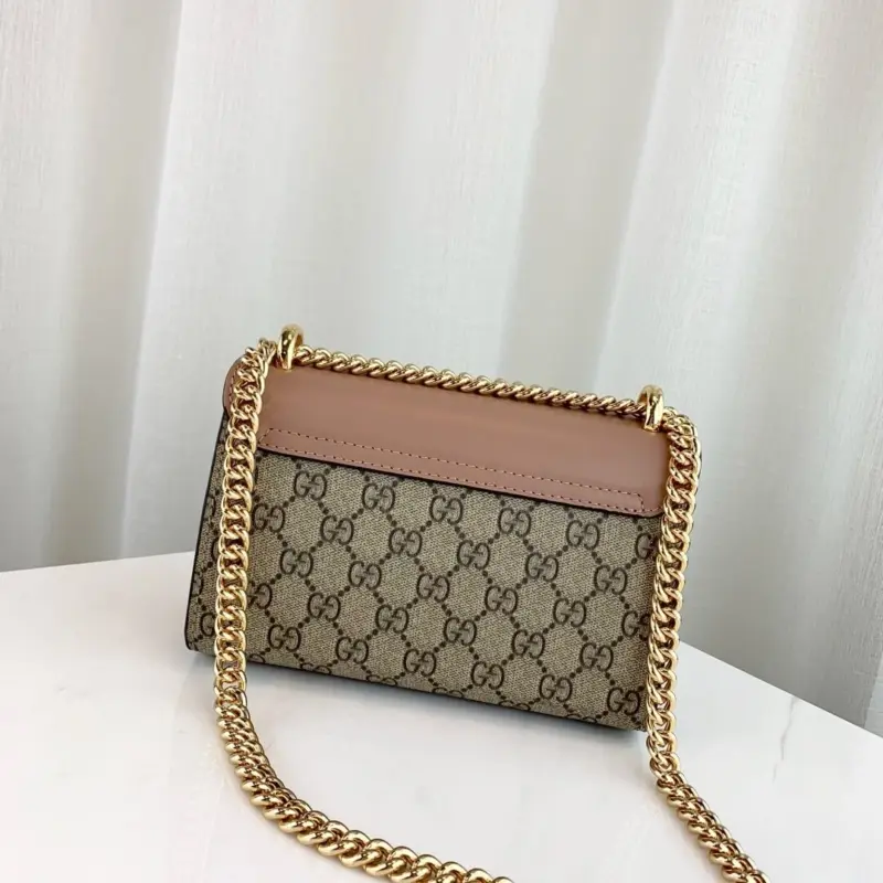 - The sliding chain strap can be set for a 20″ shoulder strap drop or an 11″ top handle drop.