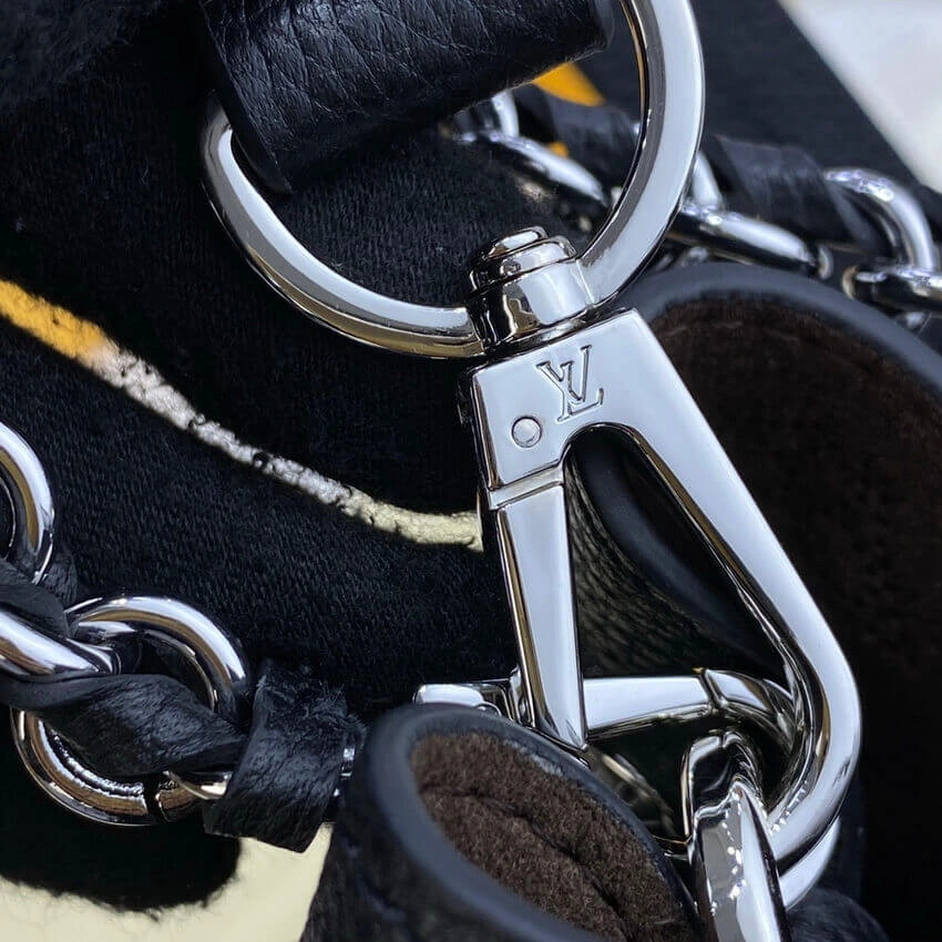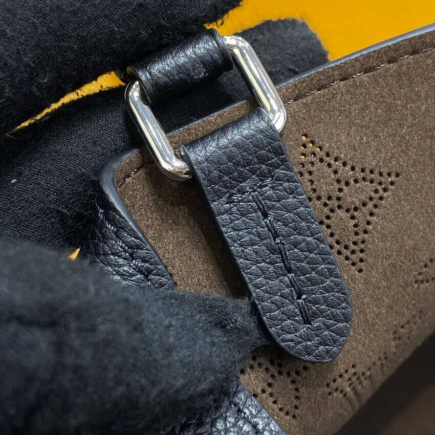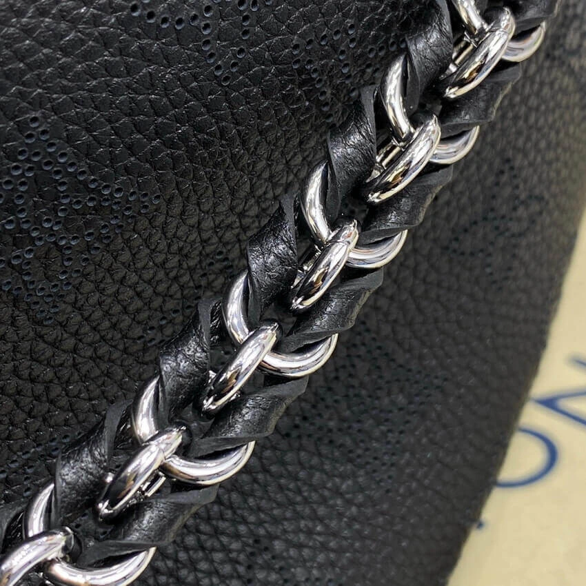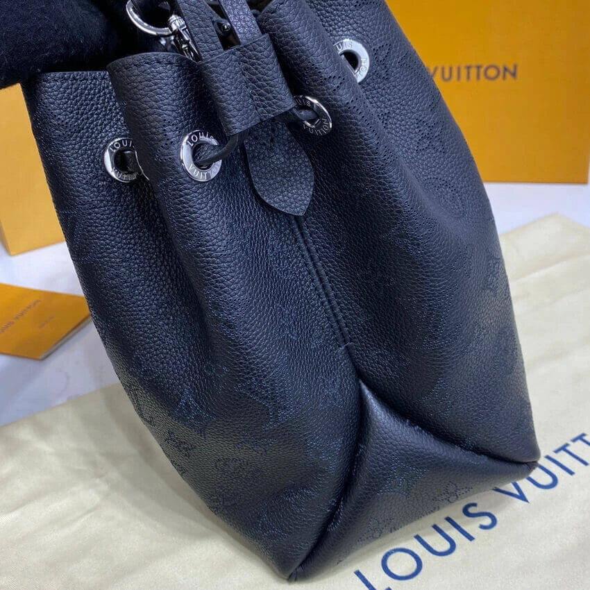 Perforated Calf Leather Bella Drawstring Bucket Bag Black M59200