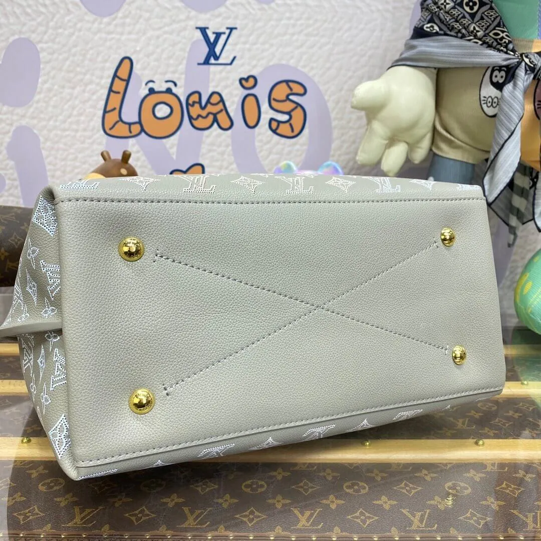Perforated Leather Hobo Style Shoulder Bag in Grey M23396