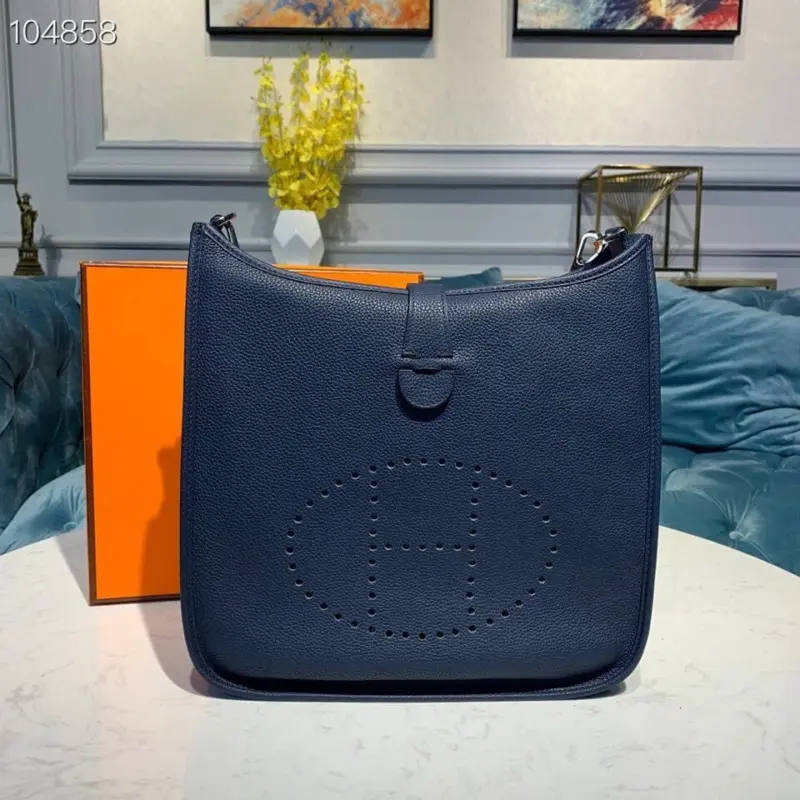 A standout feature of this bag is the distinctive perforated emblem on the front, offering a subtle yet recognizable touch of sophisticated design. Paired with an adjustable and detachable shoulder strap, this piece provides versatile carrying options. The spacious, unlined interior and convenient exterior pocket make it as functional as it is fashionable.