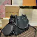 Perforated Mahina Leather Bella Drawstring Bucket Bag M57070