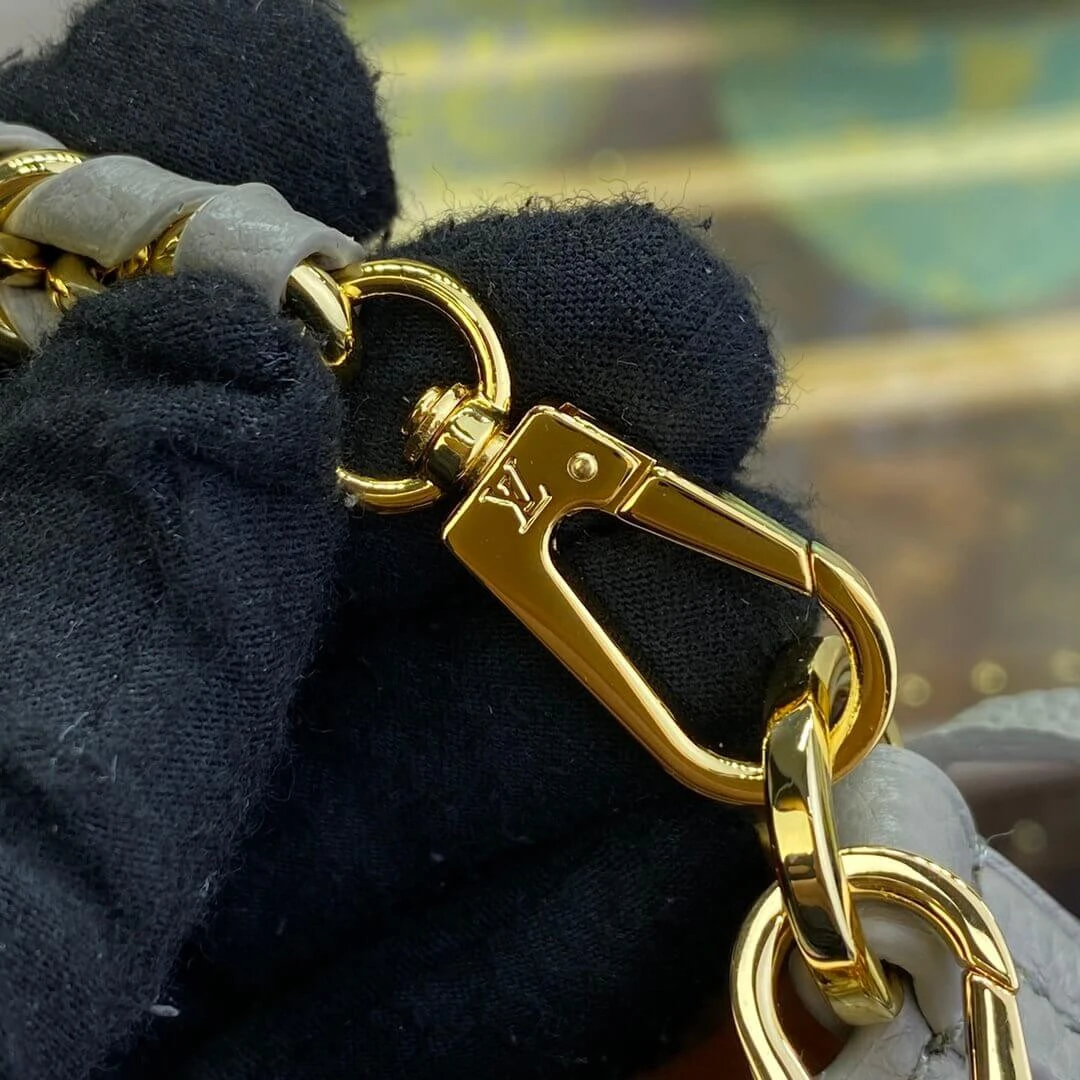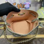 Designed for both style and practicality, this small bucket bag features a secure leather drawstring to keep your belongings safe. Its versatility is enhanced by a removable chain and a detachable, adjustable strap, allowing you to customize how you wear it—whether carried by hand, on the shoulder, or as a crossbody.