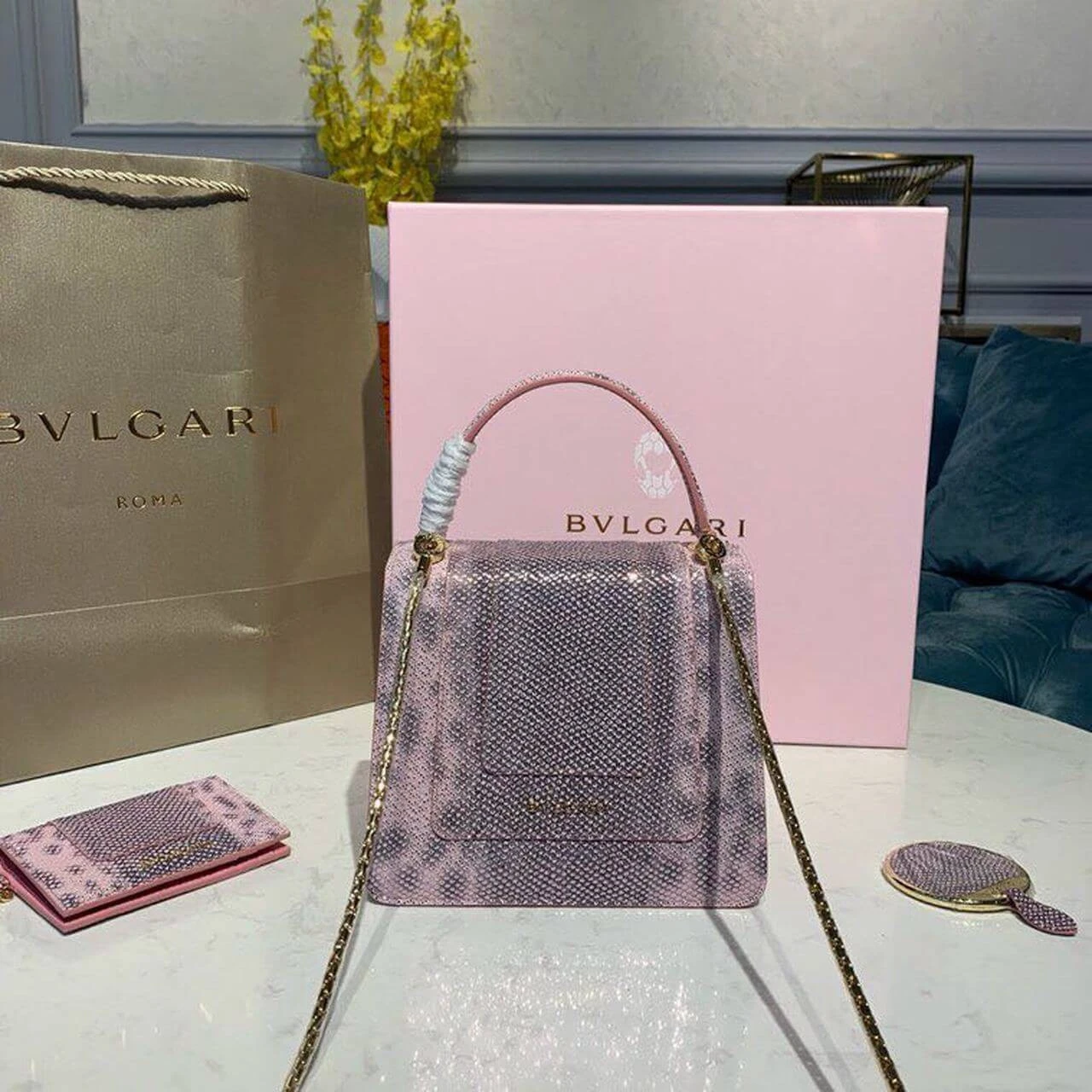 Pink Karung Skin Serpent Head Top Handle Crossbody Bag 284537