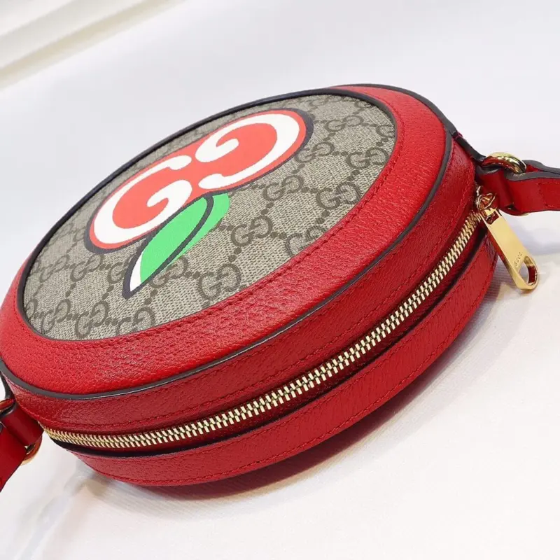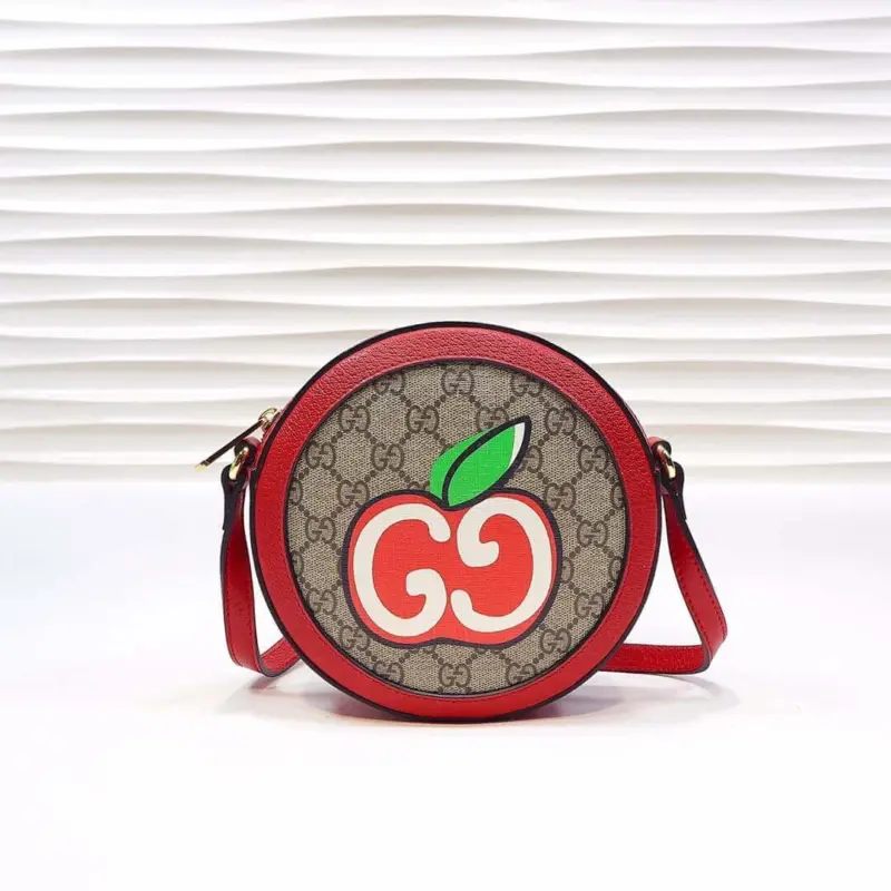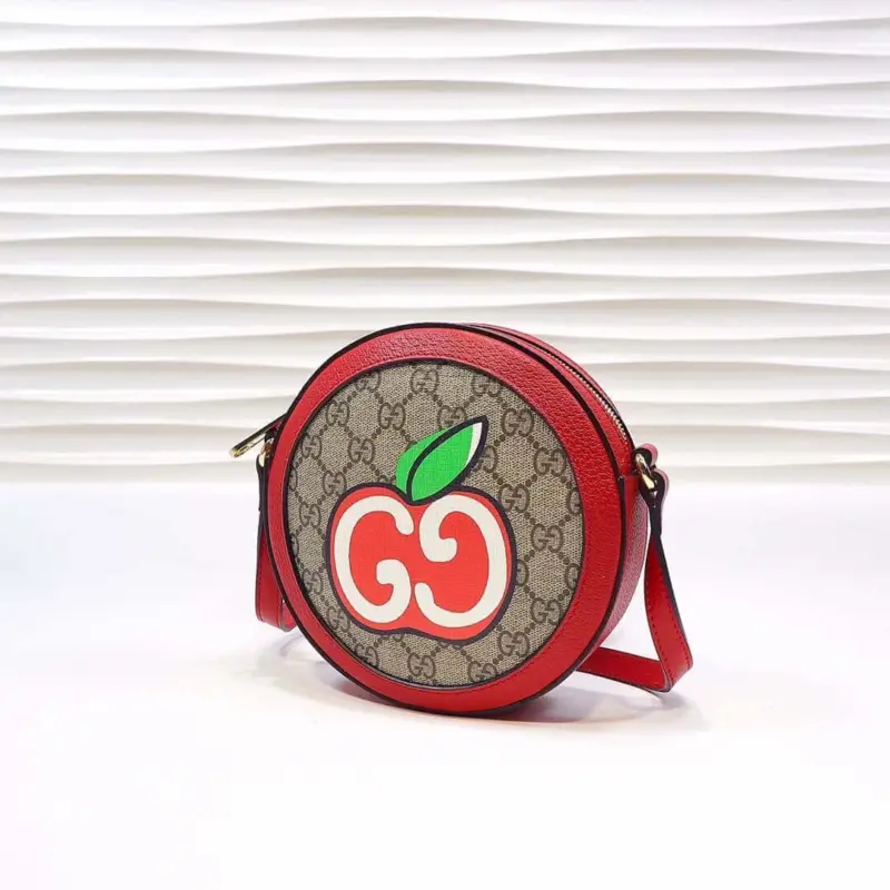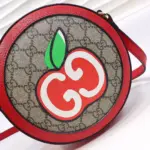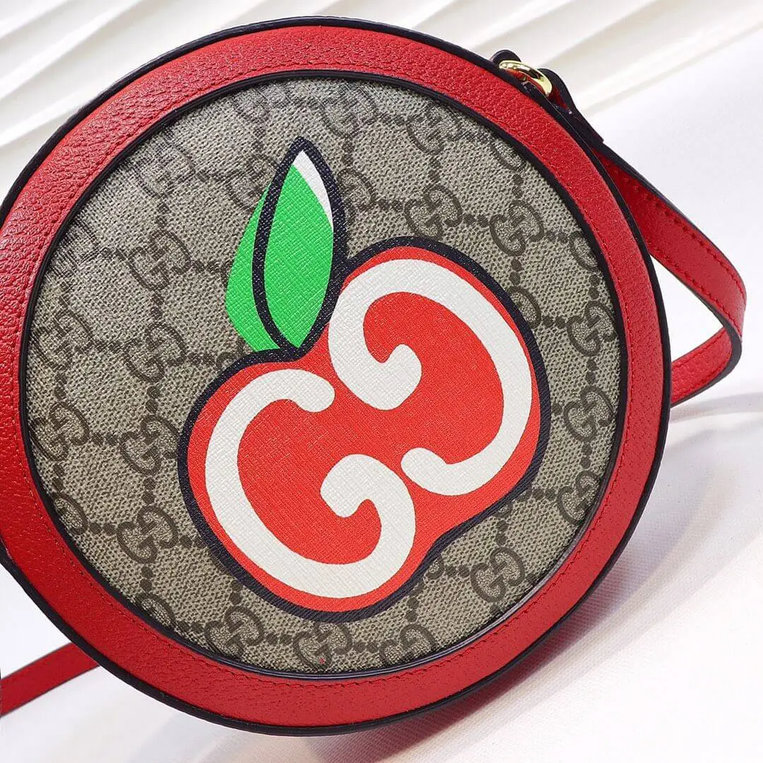 Playful Apple Print Monogram Round Crossbody Shoulder Bag 625216