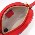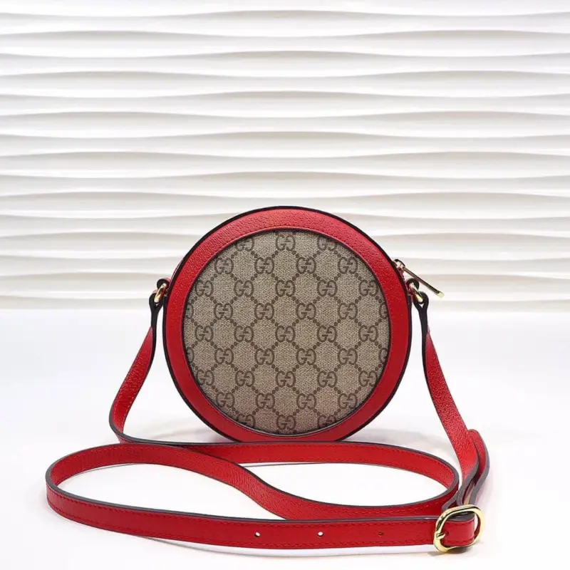Showcase your fun-loving side with this charming circular crossbody bag. Crafted from a durable coated canvas featuring a classic monogram print overlaid with a whimsical apple motif, this bag adds a touch of playful sophistication to any outfit. The compact, round silhouette is beautifully framed with rich red leather trim and accented with gleaming gold-toned hardware for a polished finish.