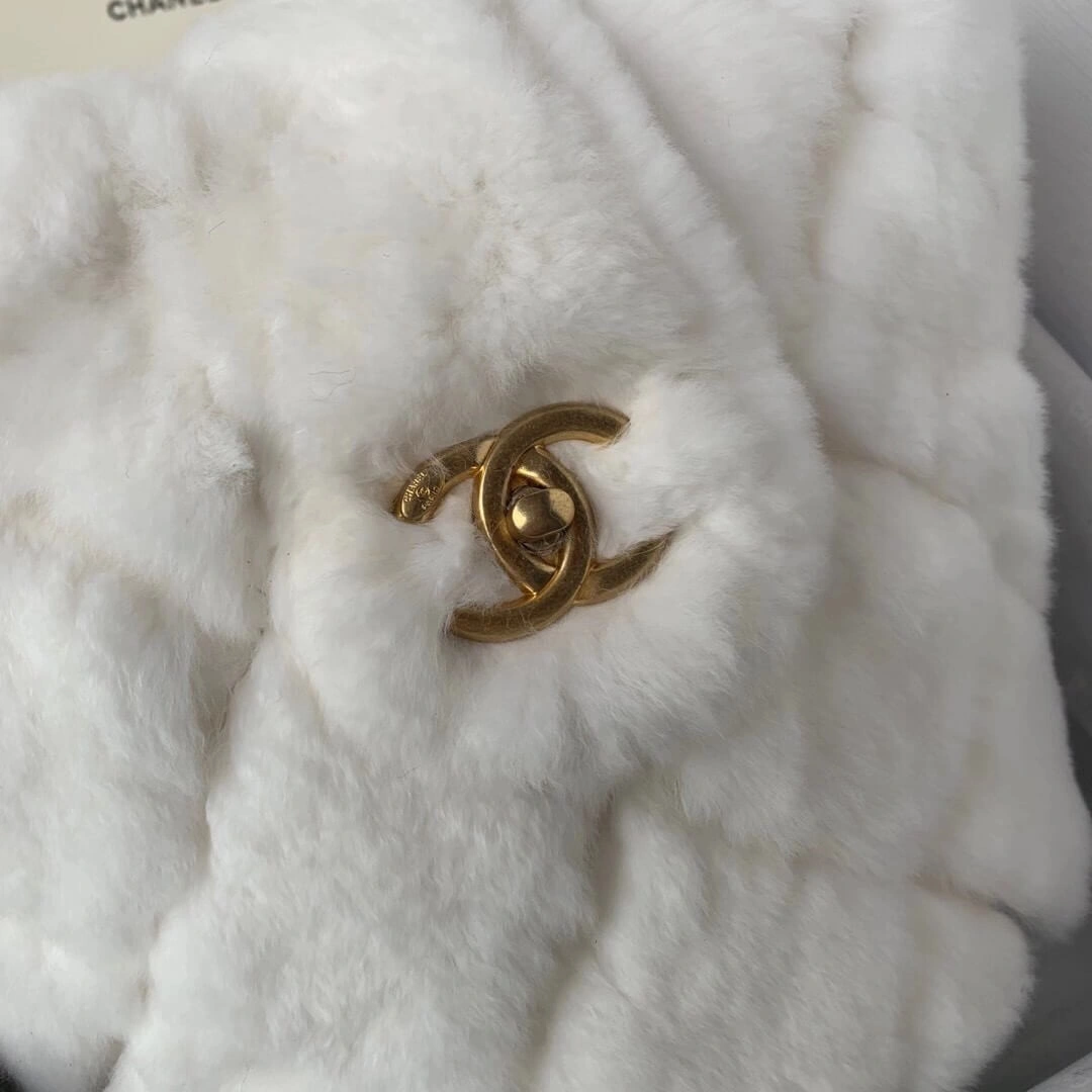 Plush Shearling Lambskin Drawstring Bucket Shoulder Bag AS2241
