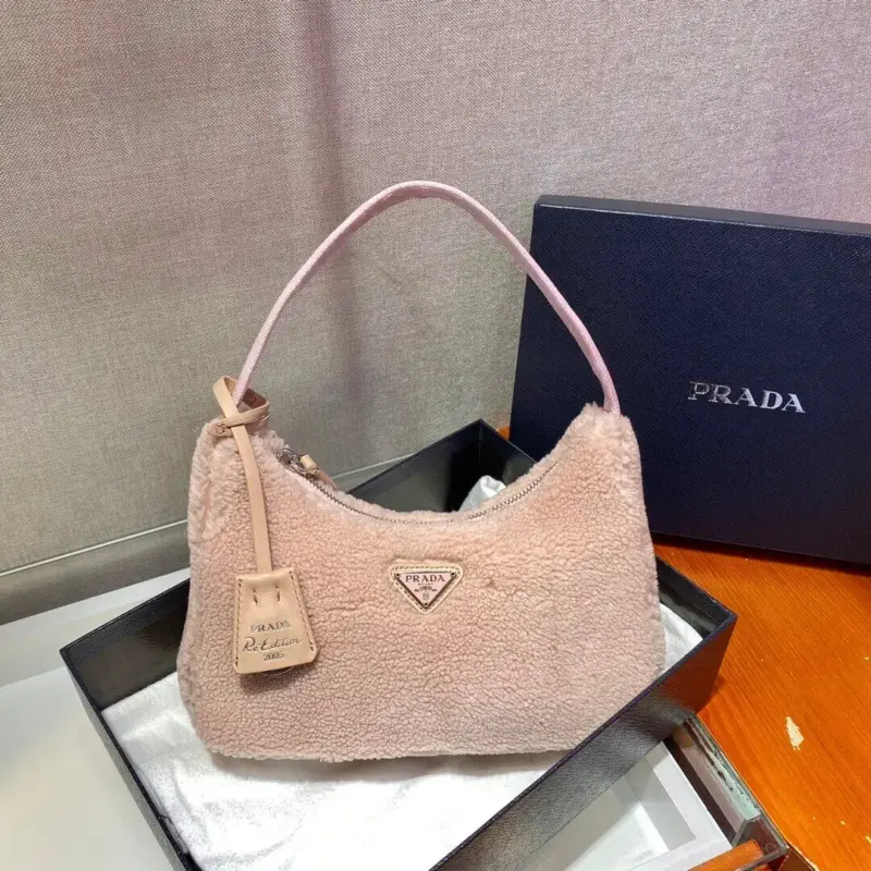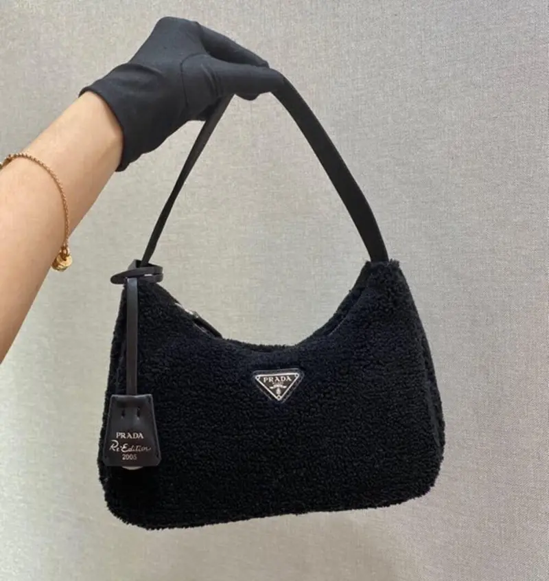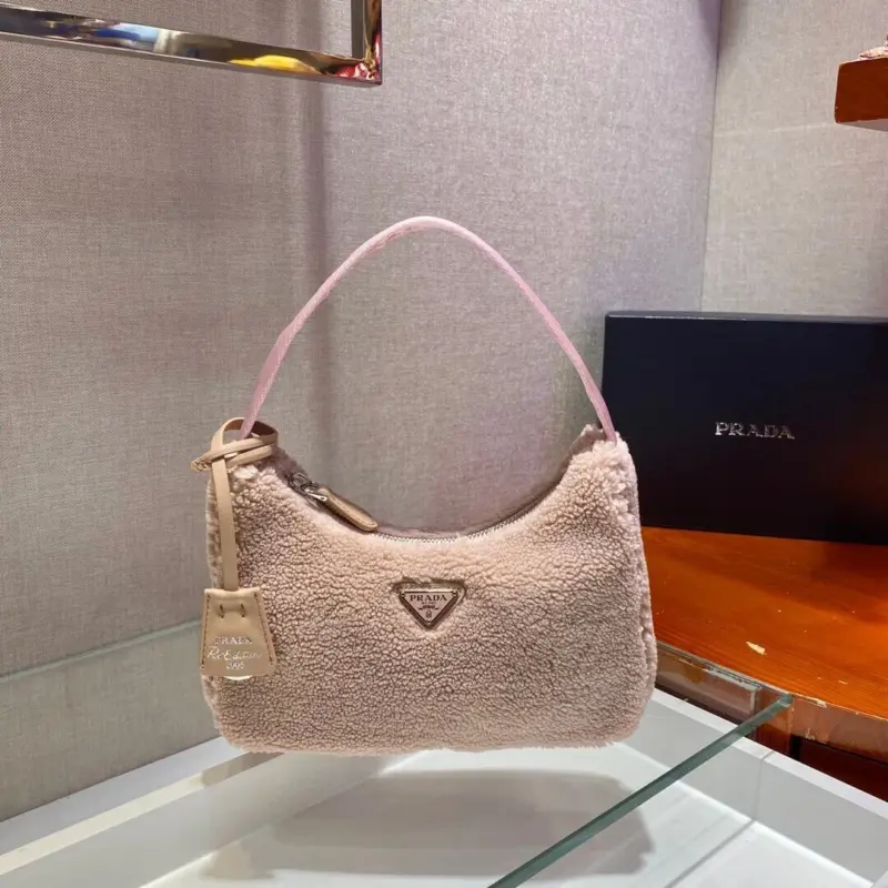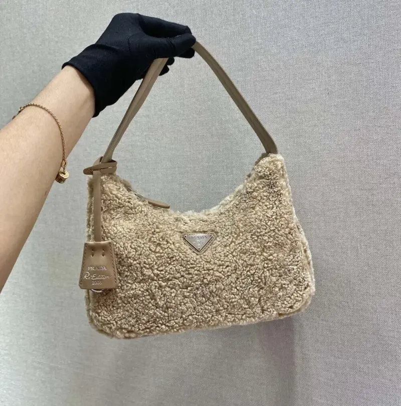 Plush Shearling Re–Edition 2000 Mini Hobo Shoulder Bag NE515