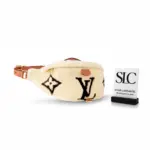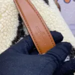 Crafted from exceptionally soft, plush shearling, this comfortable fanny pack is a perfect accessory for elevated winter style. The body of the bag features a classic repeating pattern rendered in a darker-toned shearling, beautifully complemented by caramel-colored leather trim. Its versatile design allows it to be worn comfortably around the waist, over the shoulder, or as a modern crossbody bag for hands-free convenience.