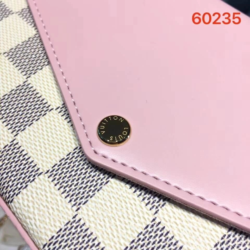 Experience timeless elegance with this versatile wallet on a chain, designed to adapt to your every need. This piece features a durable coated canvas in a classic checkerboard print, beautifully complemented by smooth cowhide leather trim in a soft, pastel rose pink. Its smart, streamlined design allows it to be worn as a crossbody bag, a shoulder bag, or carried as a sophisticated clutch, making it the perfect accessory for any occasion.