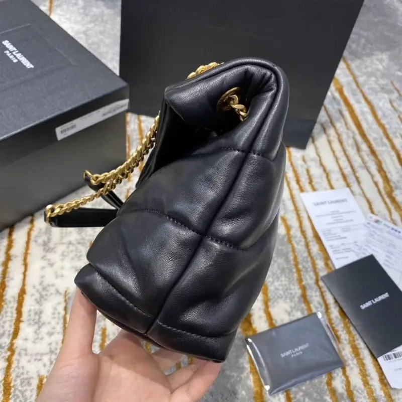 Discover a timeless accessory in this beautifully designed shoulder bag, crafted from incredibly soft and supple quilted lambskin. The plush, puffy texture gives it a modern and sophisticated appeal, making it a versatile companion for both day and evening ensembles. Its compact yet organized interior is perfect for holding your daily essentials in style.
