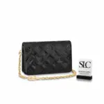 Discover a chic accessory crafted from remarkably soft lambskin, embossed with a timeless pattern to create a puffy, cushioned effect. The supple construction gives this pochette a body-friendly shape that is both comfortable to carry and stylish to behold. It’s a versatile piece that adds a touch of modern elegance to any outfit.