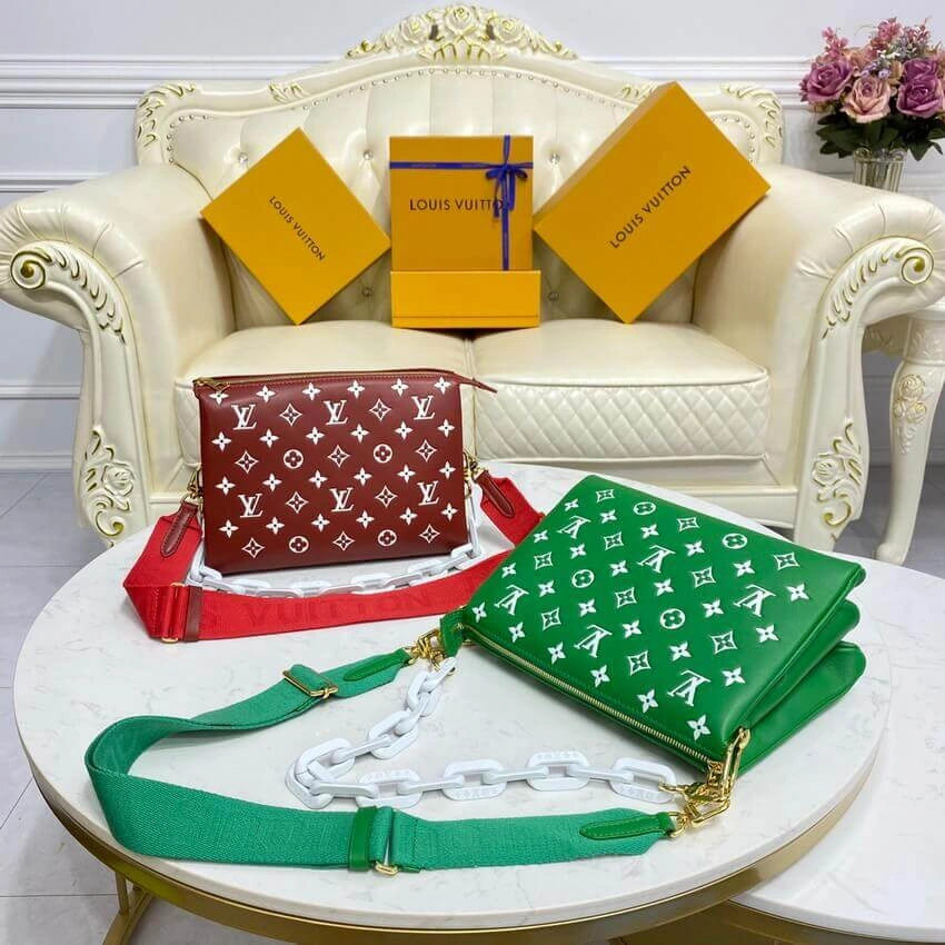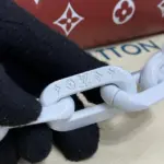 Designed for versatility, this bag includes two distinct, detachable carrying options. A chunky link chain in a contrasting polished white finish offers an elegant way to carry it by hand or on the shoulder. For hands-free convenience, a wide, adjustable strap allows for comfortable shoulder or crossbody wear, making it easy to adapt the style to any occasion.
