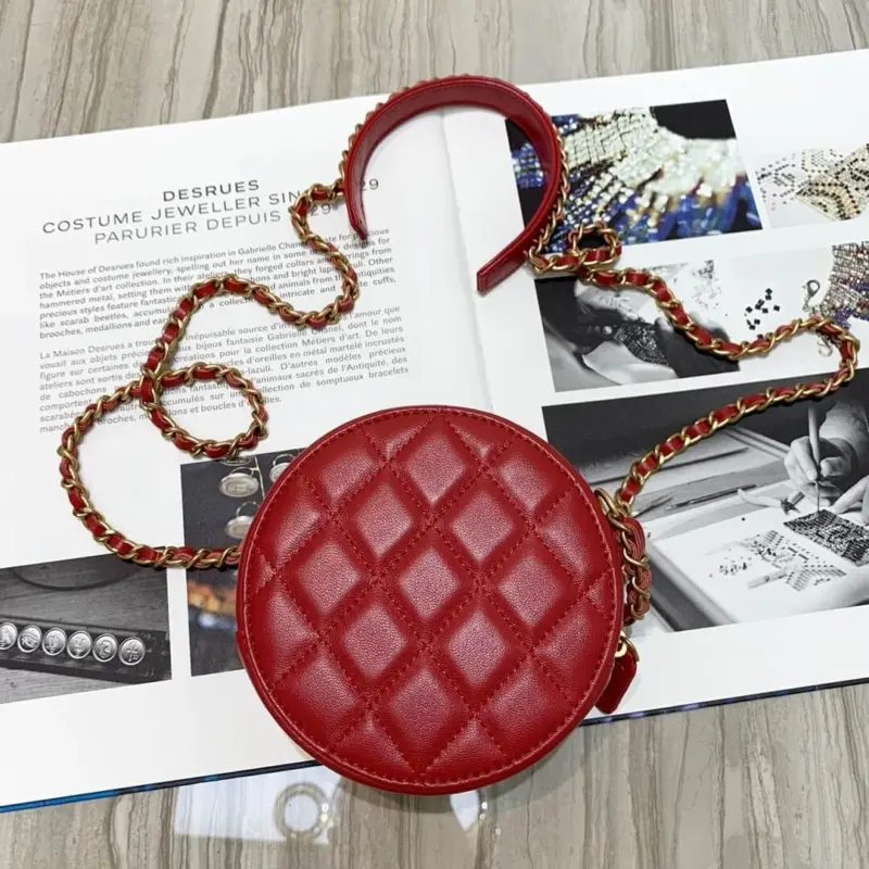 - Includes a continuous loop chain shoulder strap