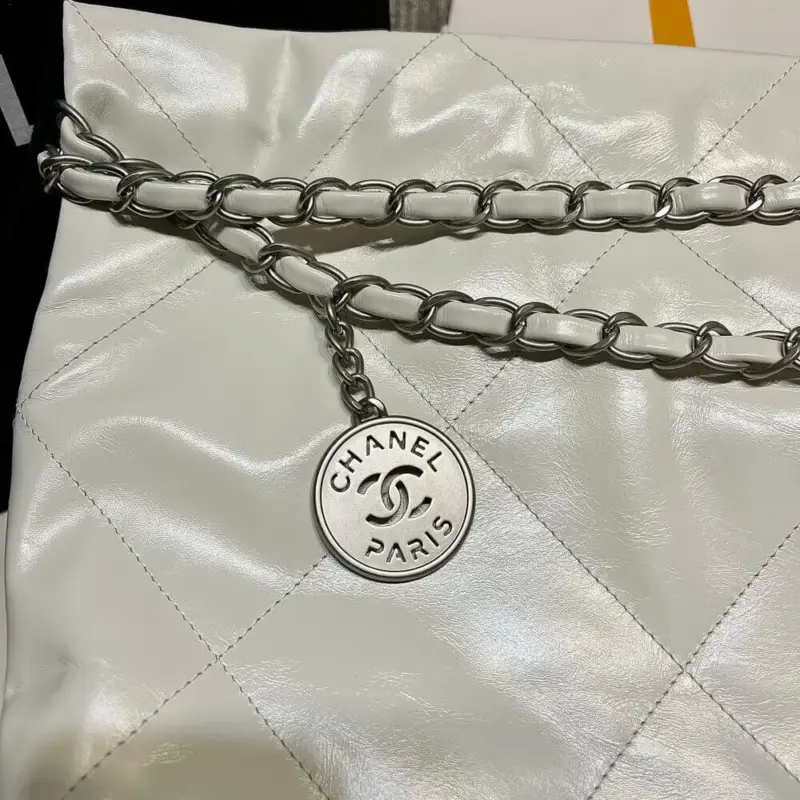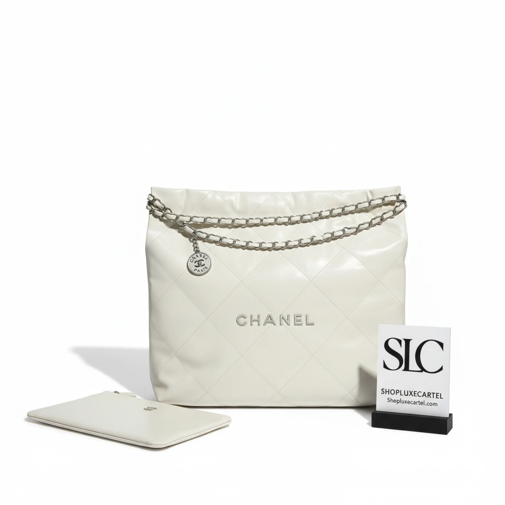 Quilted 22 Small Handbag in Shiny White Calfskin AS3260