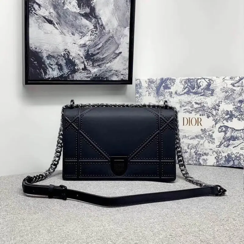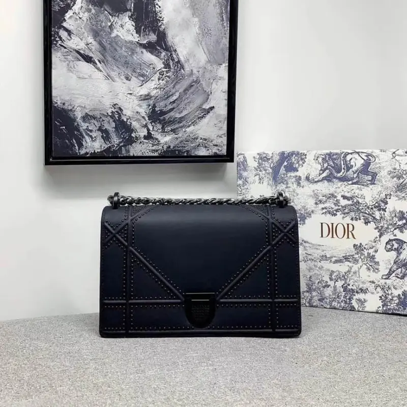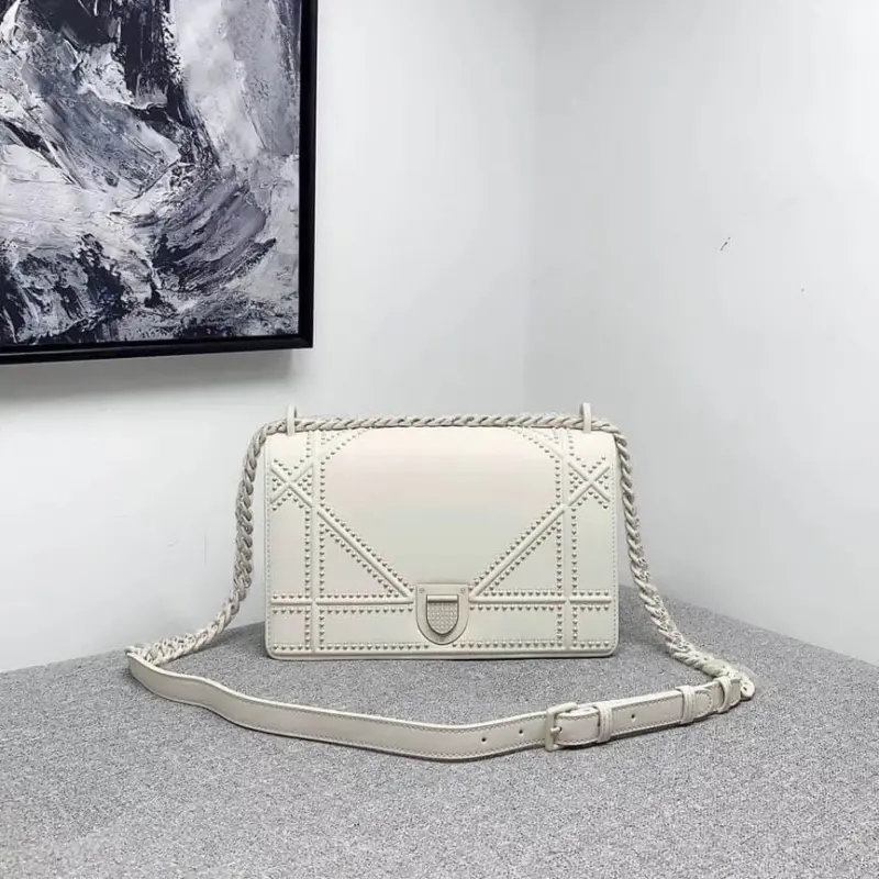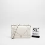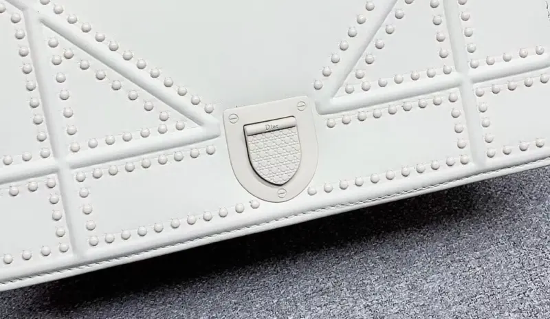 This shoulder bag presents a refined, structured silhouette crafted from luxurious matte calfskin. Its distinctive aesthetic is defined by an architectural, quilted pattern punctuated with subtle stud details, offering a modern edge to a classic design. The clean lines and sophisticated construction make it a versatile accessory for any occasion.