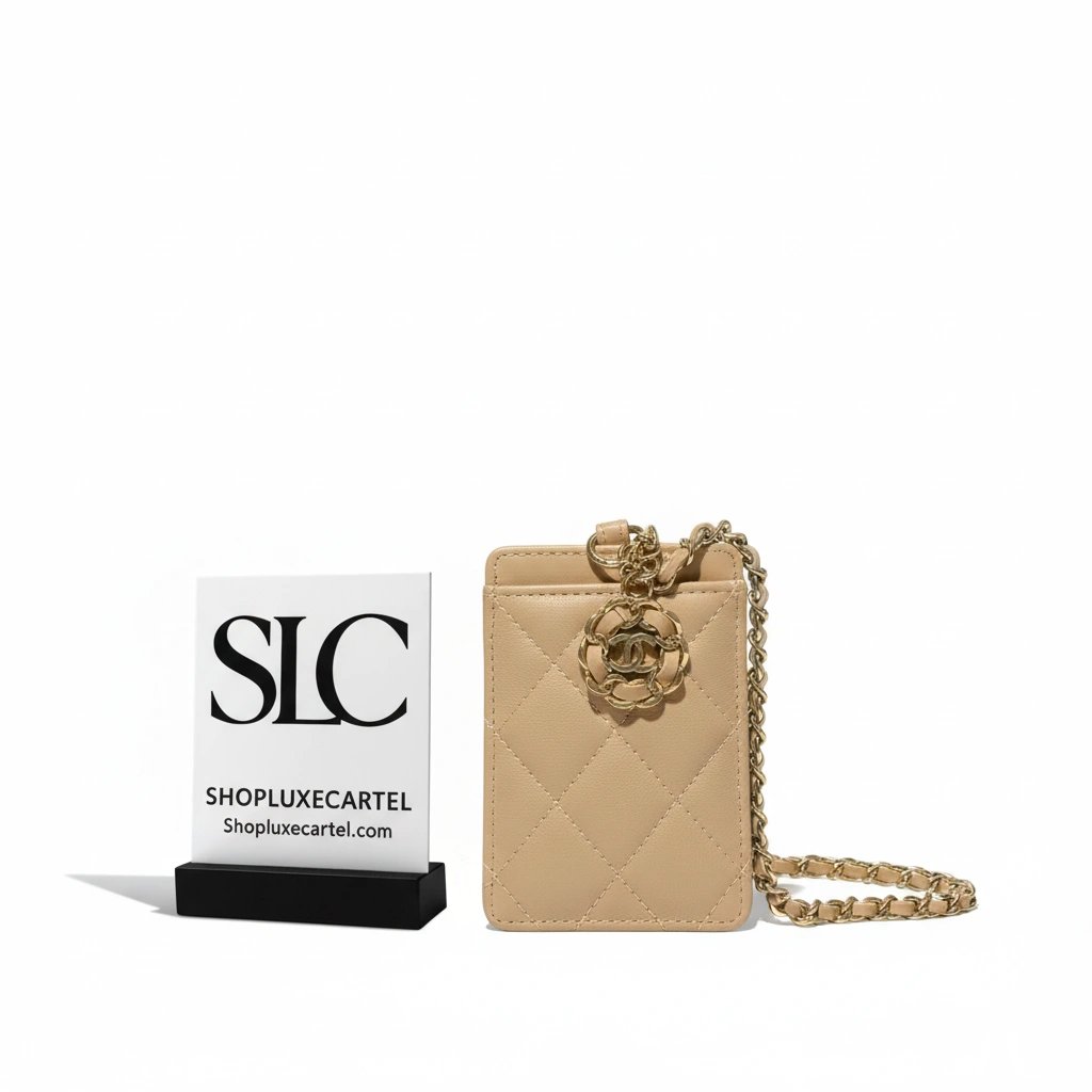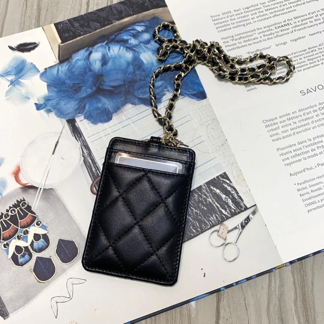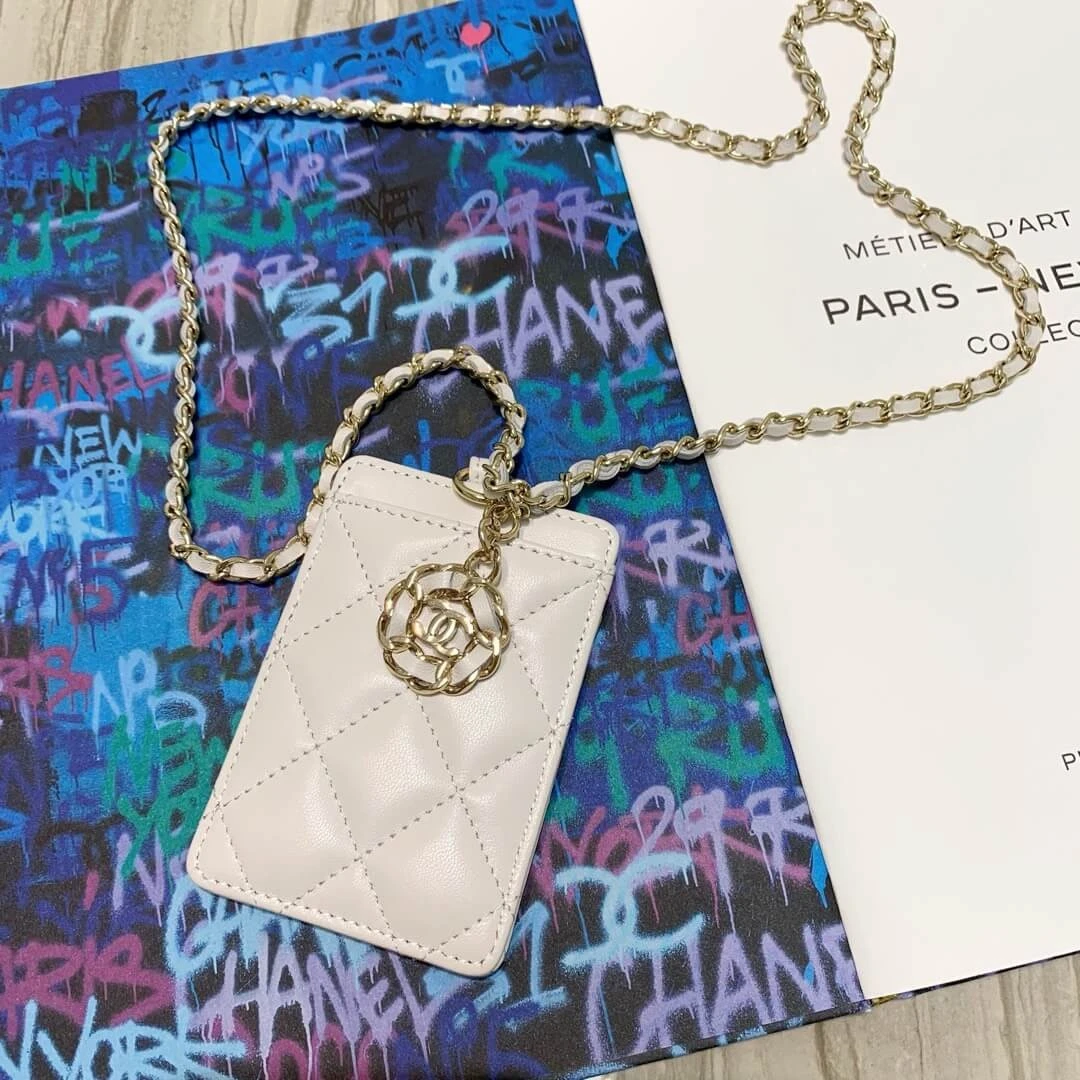 This versatile piece is elevated with gleaming gold-tone hardware and includes a chic woven chain strap intertwined with leather, allowing it to be worn as a mini bag for hands-free ease. It’s an ideal choice for moments when you only need to carry the necessities, blending the functionality of a wallet with the style of a contemporary accessory.