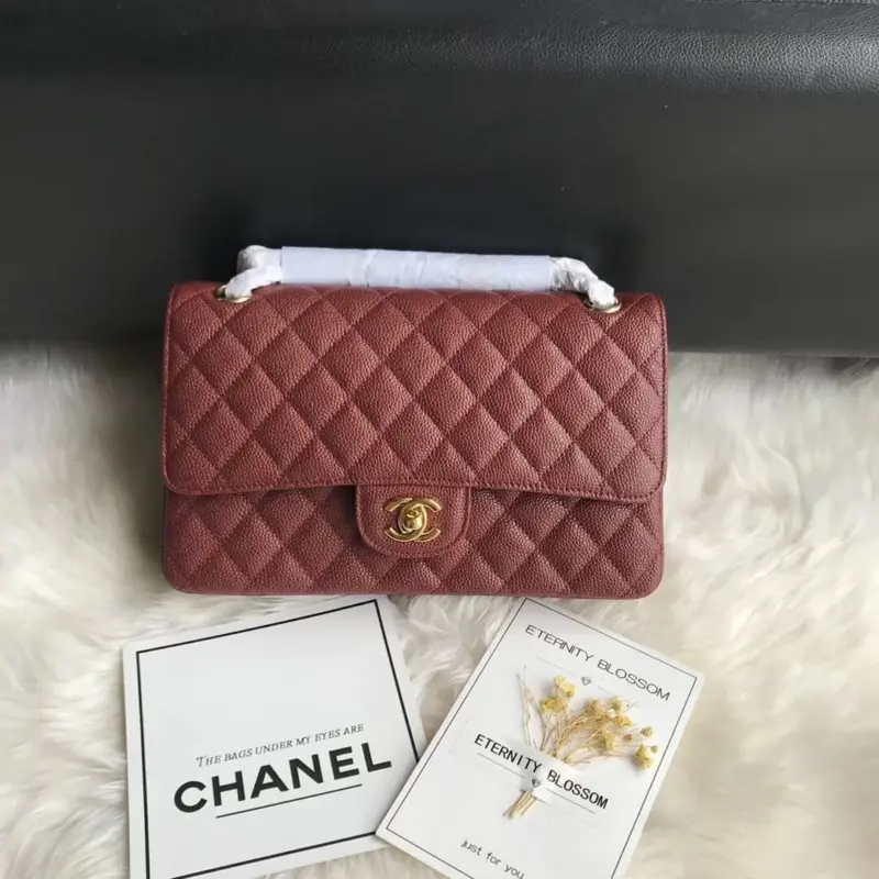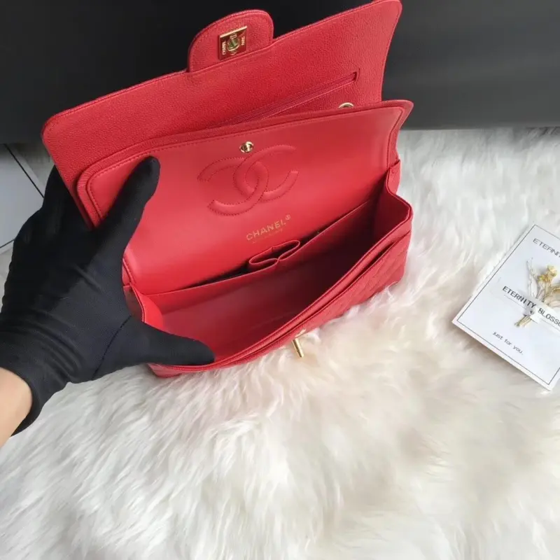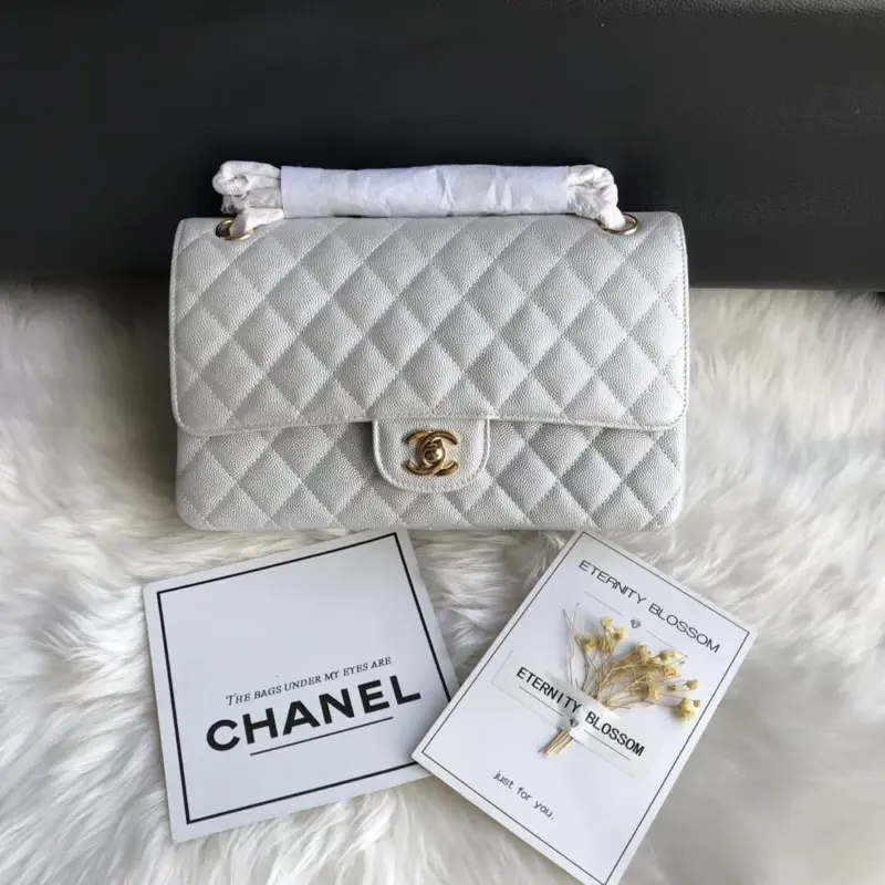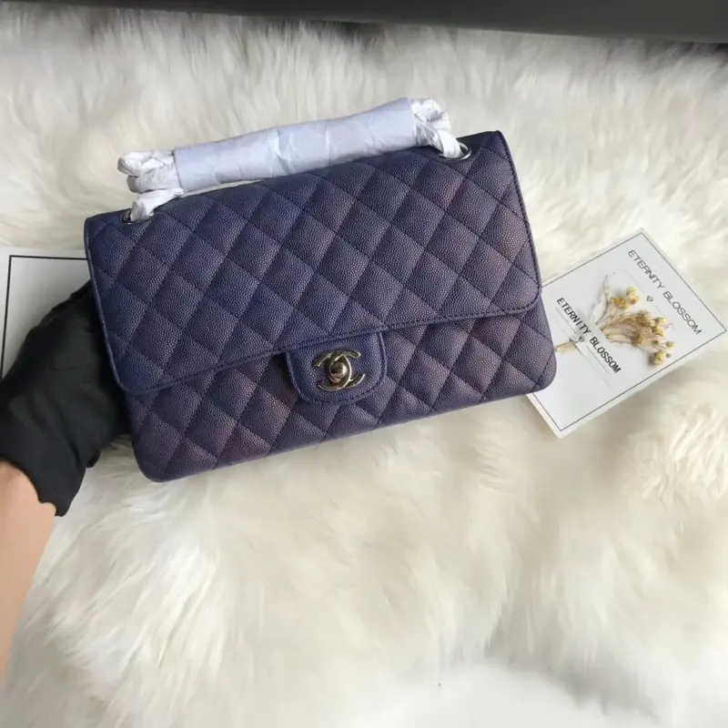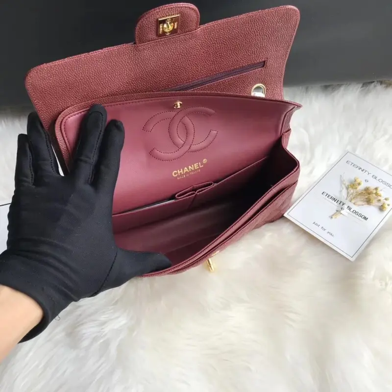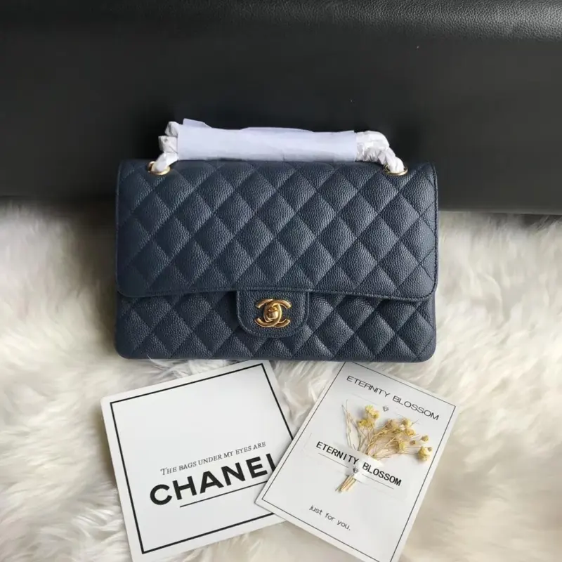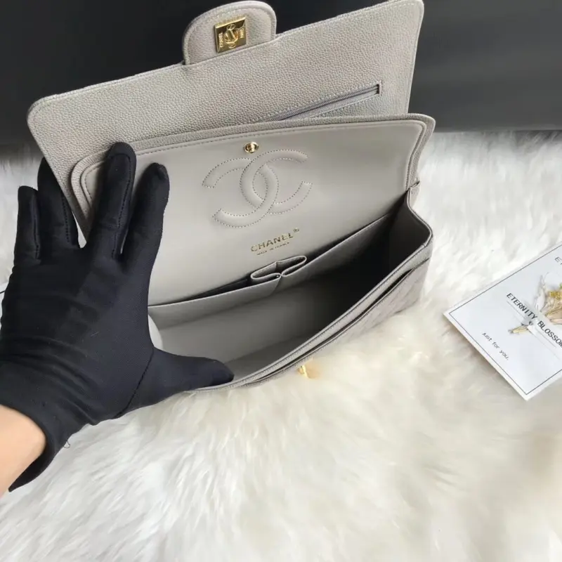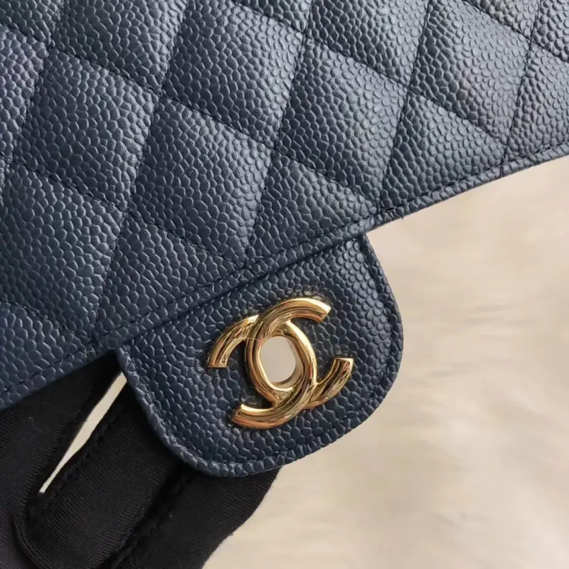 - Exterior Material: Genuine imported caviar calfskin leather with a quilted finish