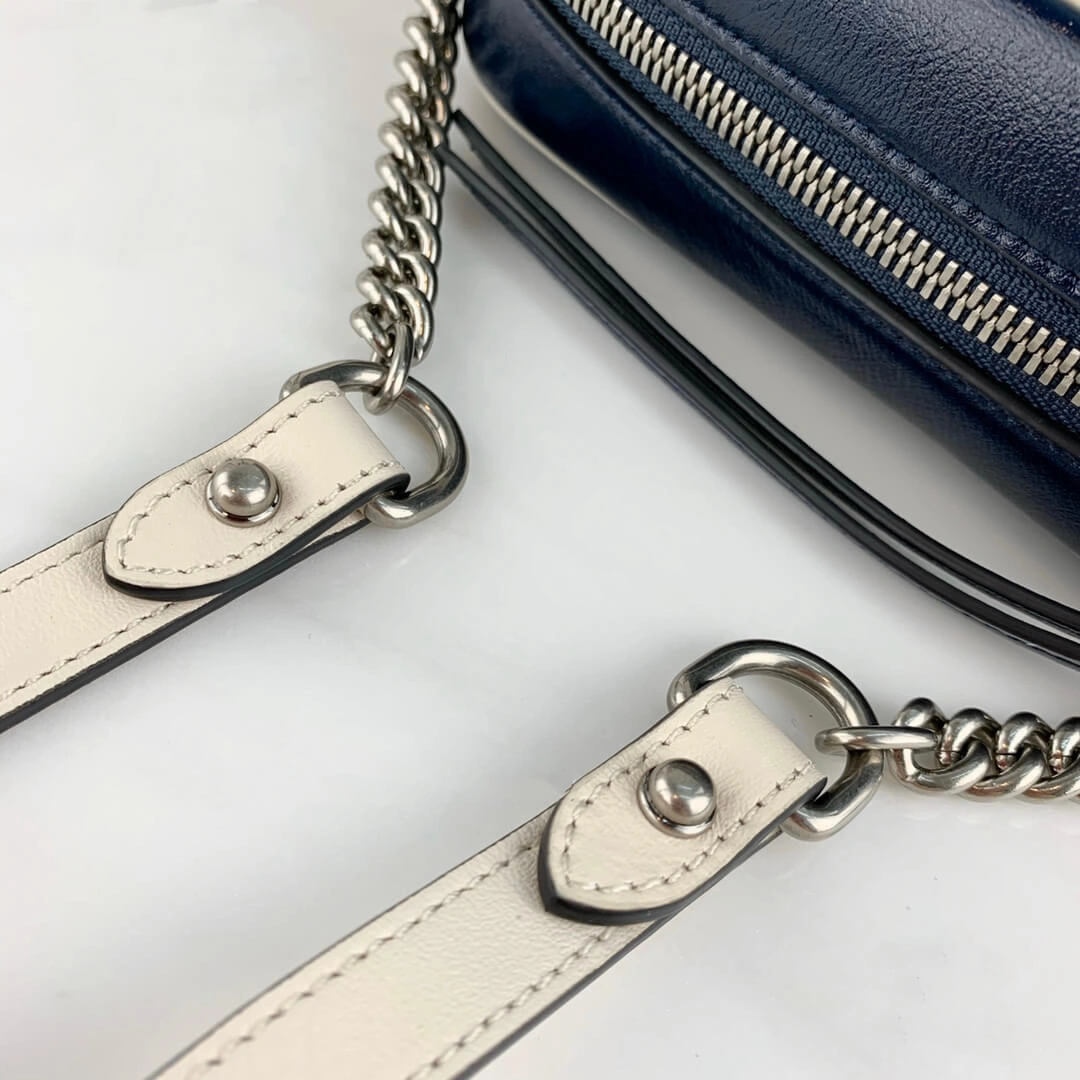 - Chain shoulder strap with a comfortable leather detail and a 61 cm drop