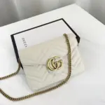 The bag’s flap is adorned with an antique gold-toned interlocking emblem, inspired by vintage 70s designs. Inside, the highly organized interior features multiple compartments, numerous card slots, and a secure zip pocket, ensuring all your essentials are neatly arranged and easily accessible.