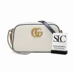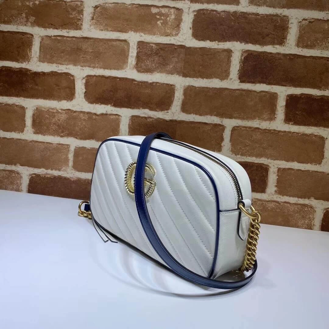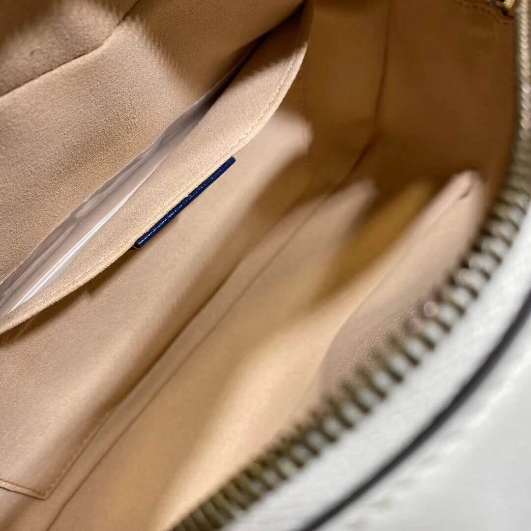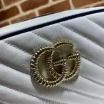 • Crafted from white leather with a diagonal matelassé quilted finish and a vintage effect