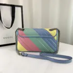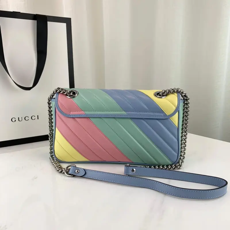 Showcasing a vibrant arrangement of soft, pastel hues, this shoulder bag brings a touch of playful elegance to any look. The bag is crafted from beautifully quilted chevron leather, creating a sophisticated texture that complements its softly structured silhouette. A versatile sliding chain strap allows you to effortlessly switch between a shoulder bag and a top handle, making it the perfect accessory for both day and evening wear.