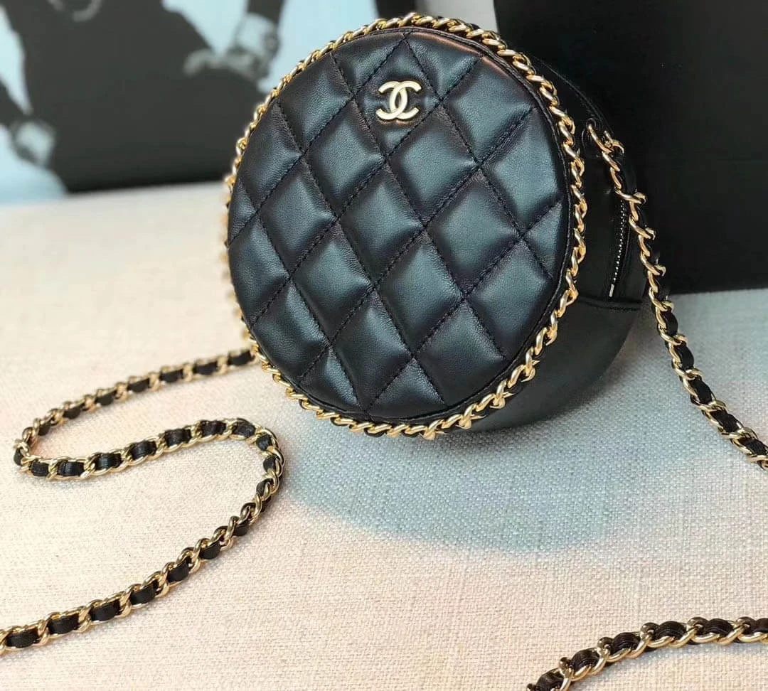 Quilted Circular Evening Bag with Crossbody Chain Strap A70657