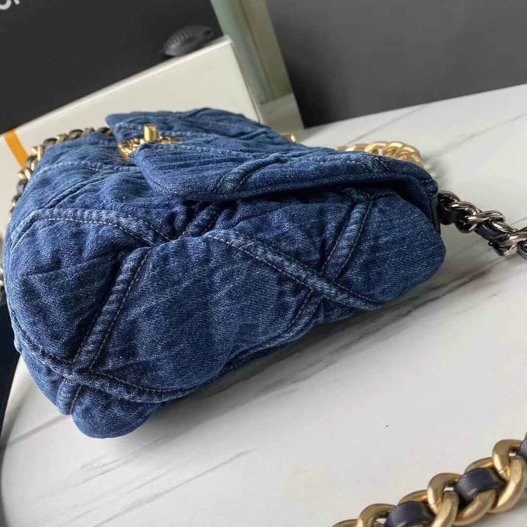 Quilted Denim 19 Large Flap Shoulder Bag AS1161