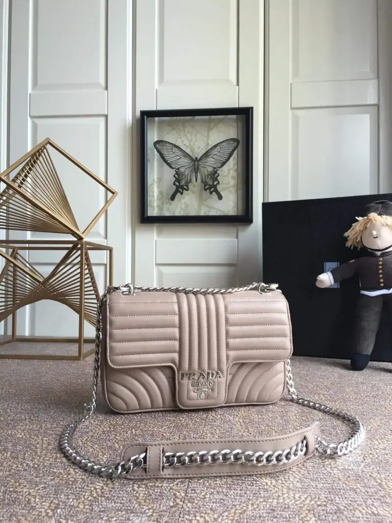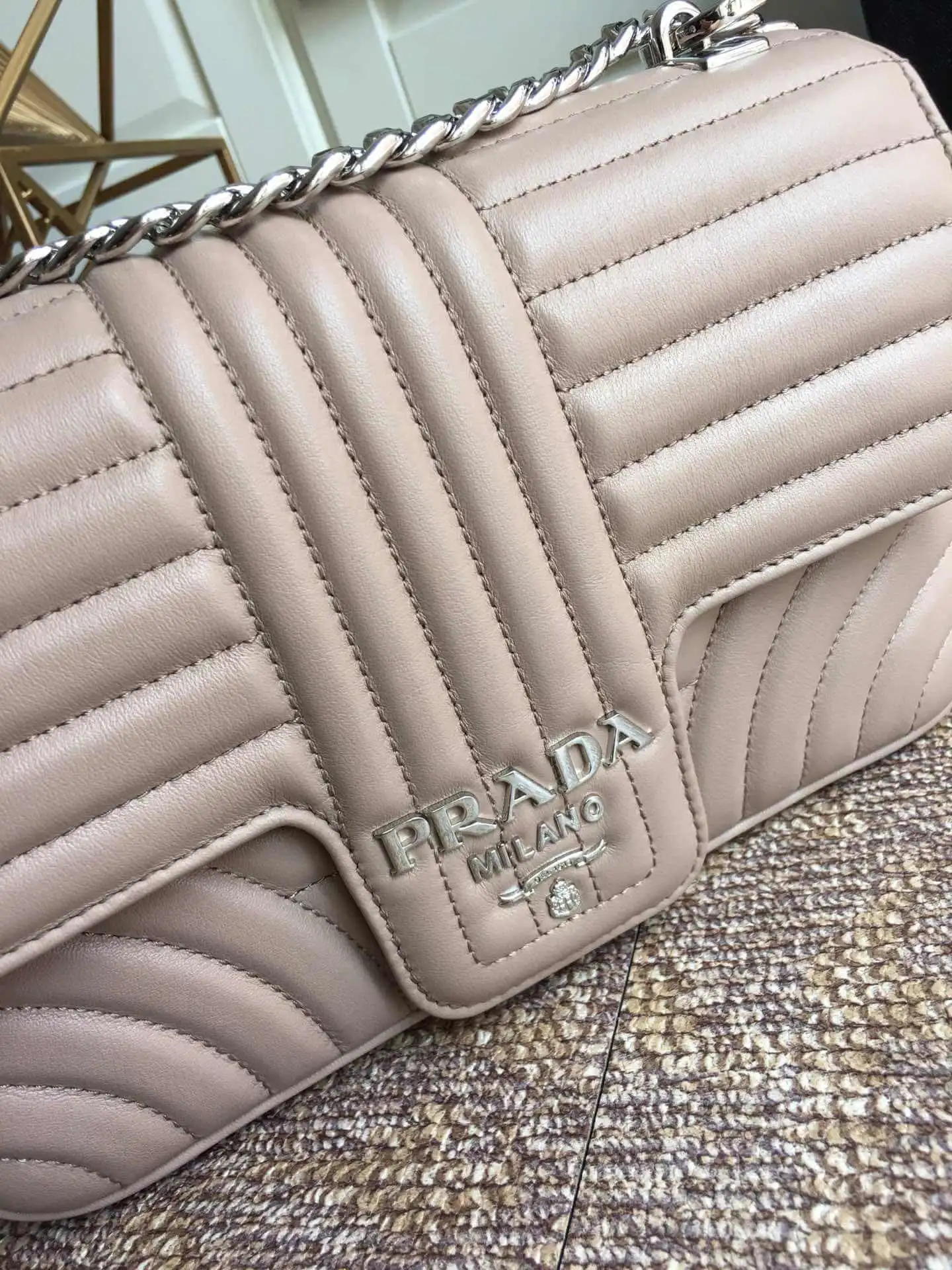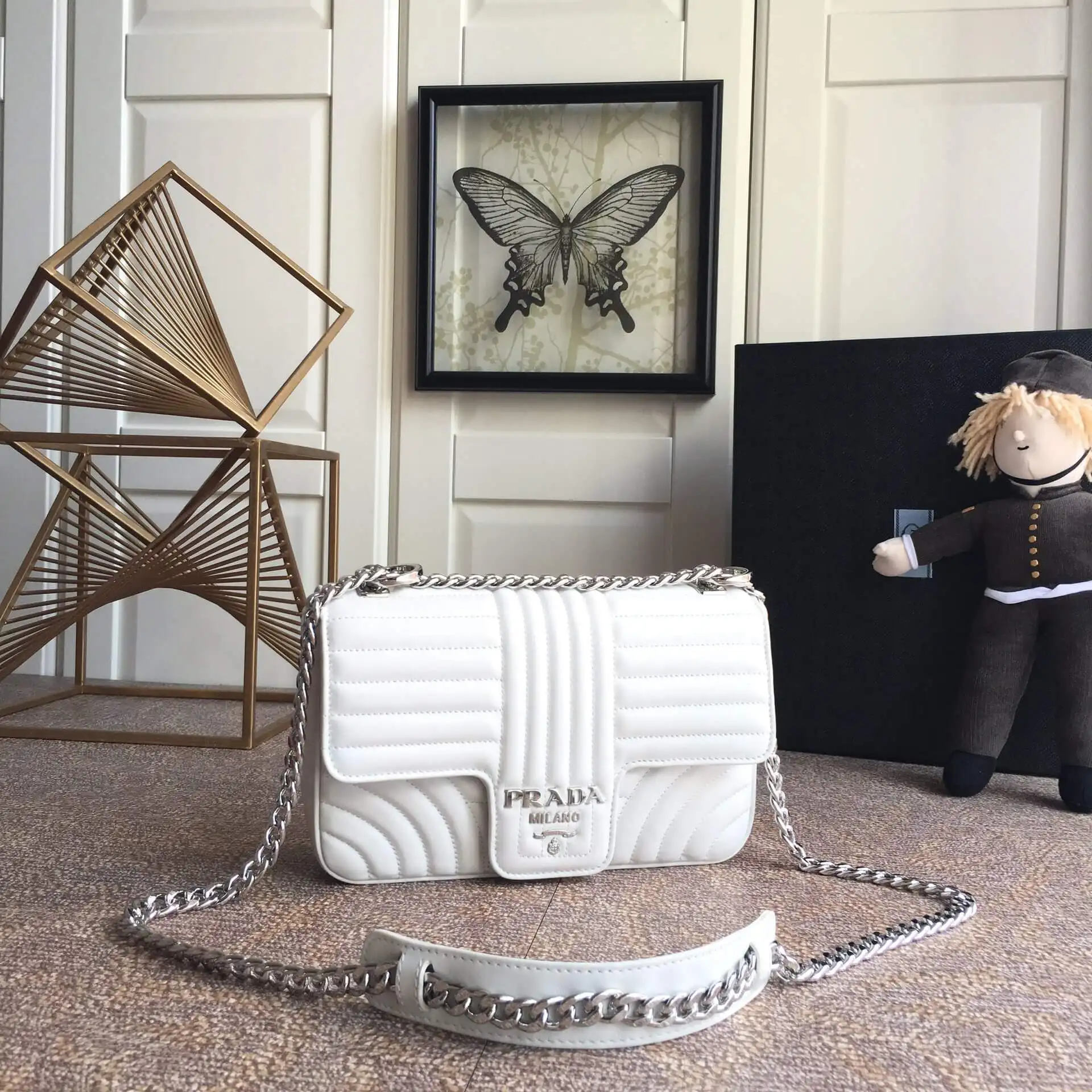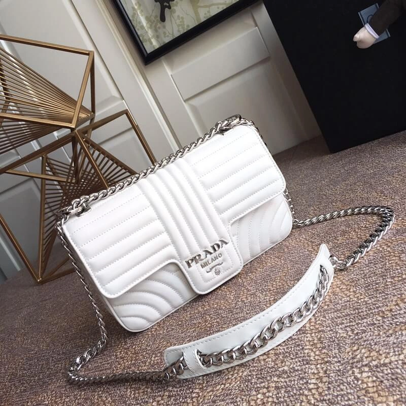 Quilted Diagramme Medium Leather Shoulder Bag Silver Hardware 1BD108